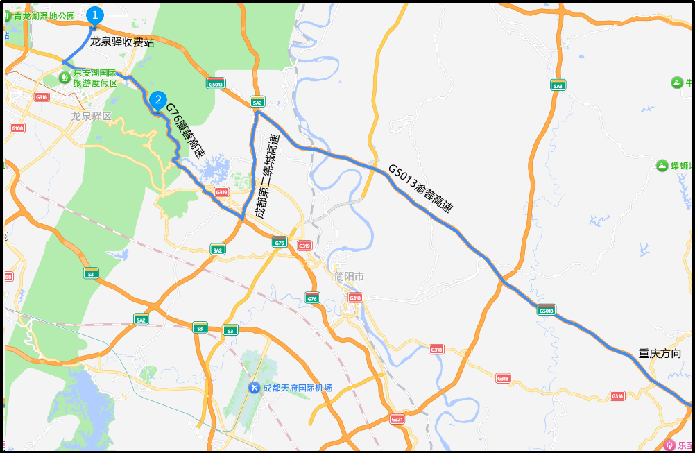 绕行路线是啥?记者了解到,原需从龙泉驿收费站进站前往重庆方向的车辆,经汽车城大道绕行至G76厦蓉高速公路成都收费站进站,通过SA2成都第二绕城高速公路转换进入G5013渝蓉高速公路继续行驶。