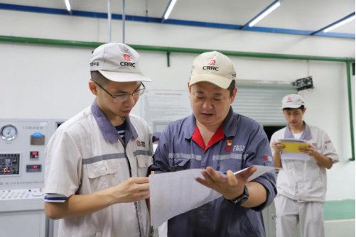 中车眉山车辆有限公司特级技师高恒(中)讲解相关事项。