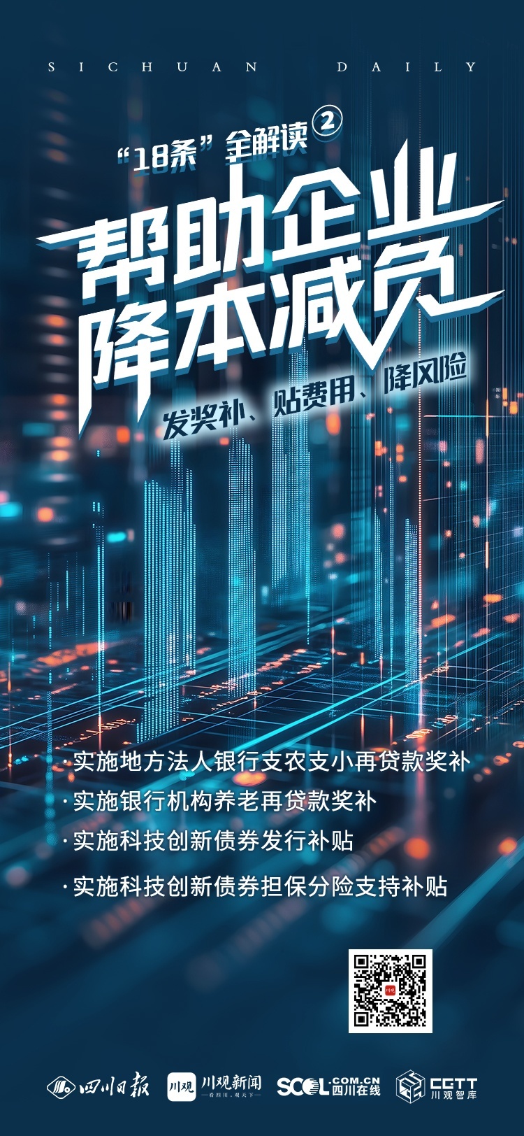 近日,四川出台巩固拓展经济回升向好势头新“18条”,在“帮助企业降本减负”方面提出4条高“含金量”举措:实施地方法人银行支农支小再贷款奖补、银行机构养老再贷款奖补、科技创新债券发行补贴、科技创新债券担保分险支持补贴。