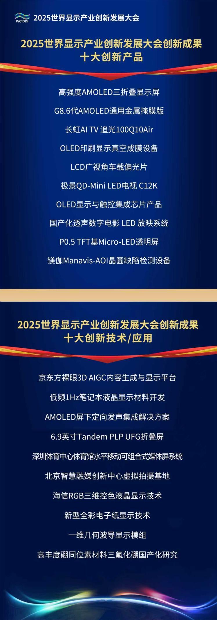 11月3日,2025世界显示产业创新发展大会在成都举行。开幕式现场,发布十大创新产品、十大创新技术(应用)。