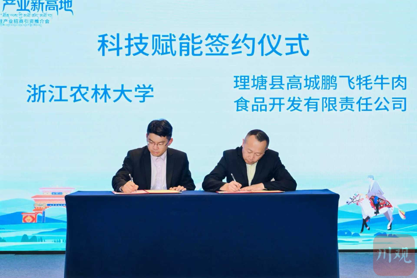 推介会上,7项重要合作签约仪式同步举行,覆盖产业投资、科技赋能、校地协同等多个领域。四川杰鑫云数字供应链管理有限公司、四川蜀西汇数字科技有限公司等企业分别与理塘县经信商务局签订投资意向协议,聚焦高原特色农牧业开发,包含牦牛奶制品生产加工、绿色农牧业生态养殖和数字供应链发展三大板块,意向投资金额近2亿元;浙江大学、浙江农林大学、浙江科技大学等高校分别与理塘企业签订科技赋能协议,将围绕农业技术研发、农产品深加工、品牌运营等方面展开深度合作。