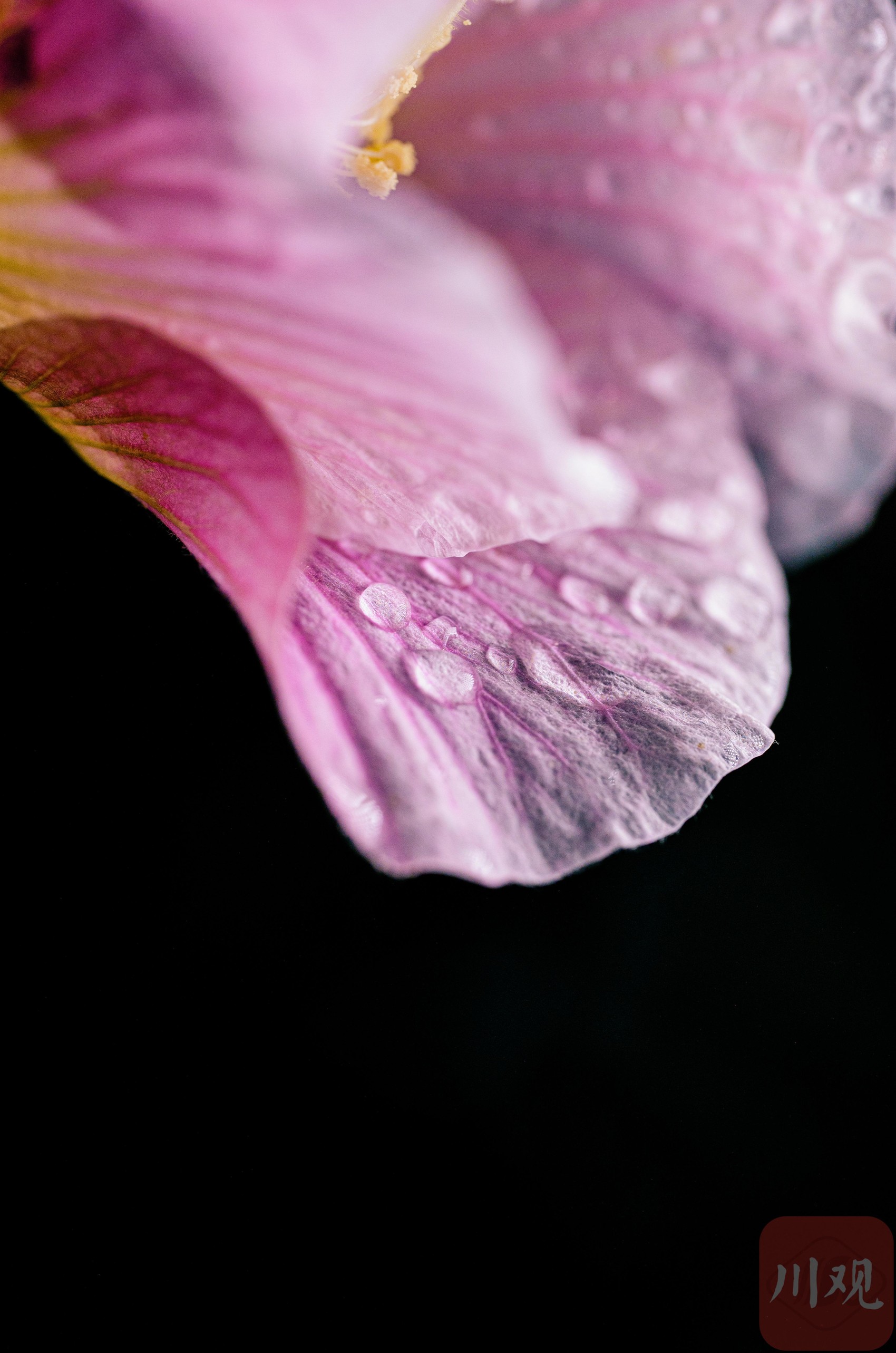 芙蓉花瓣上的雨滴。(10月27日拍摄)