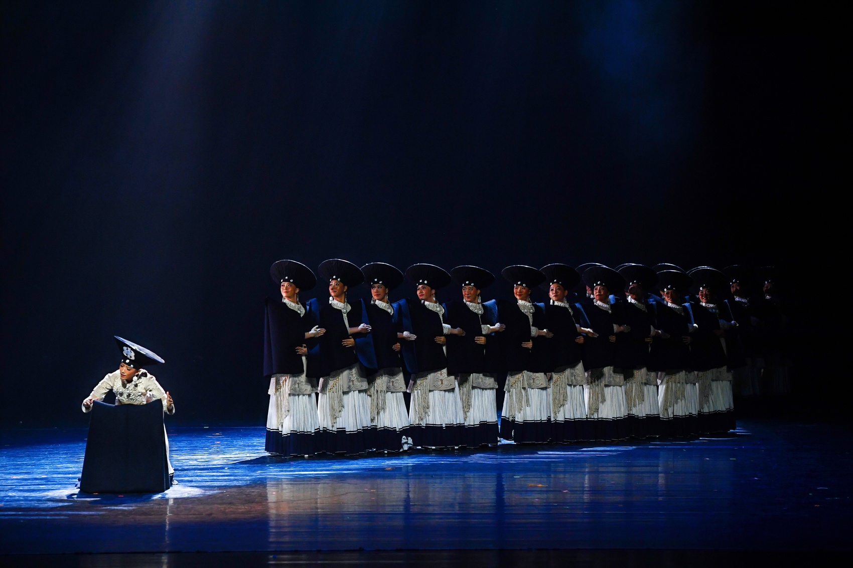 群舞《阿妈就是那座山》将目光聚焦于凉山彝族的阿妈们,她们世代在大山深处辛勤劳作、简朴生活、深情守候,用一生诠释着如山般坚韧、如土般质朴的生命力量。