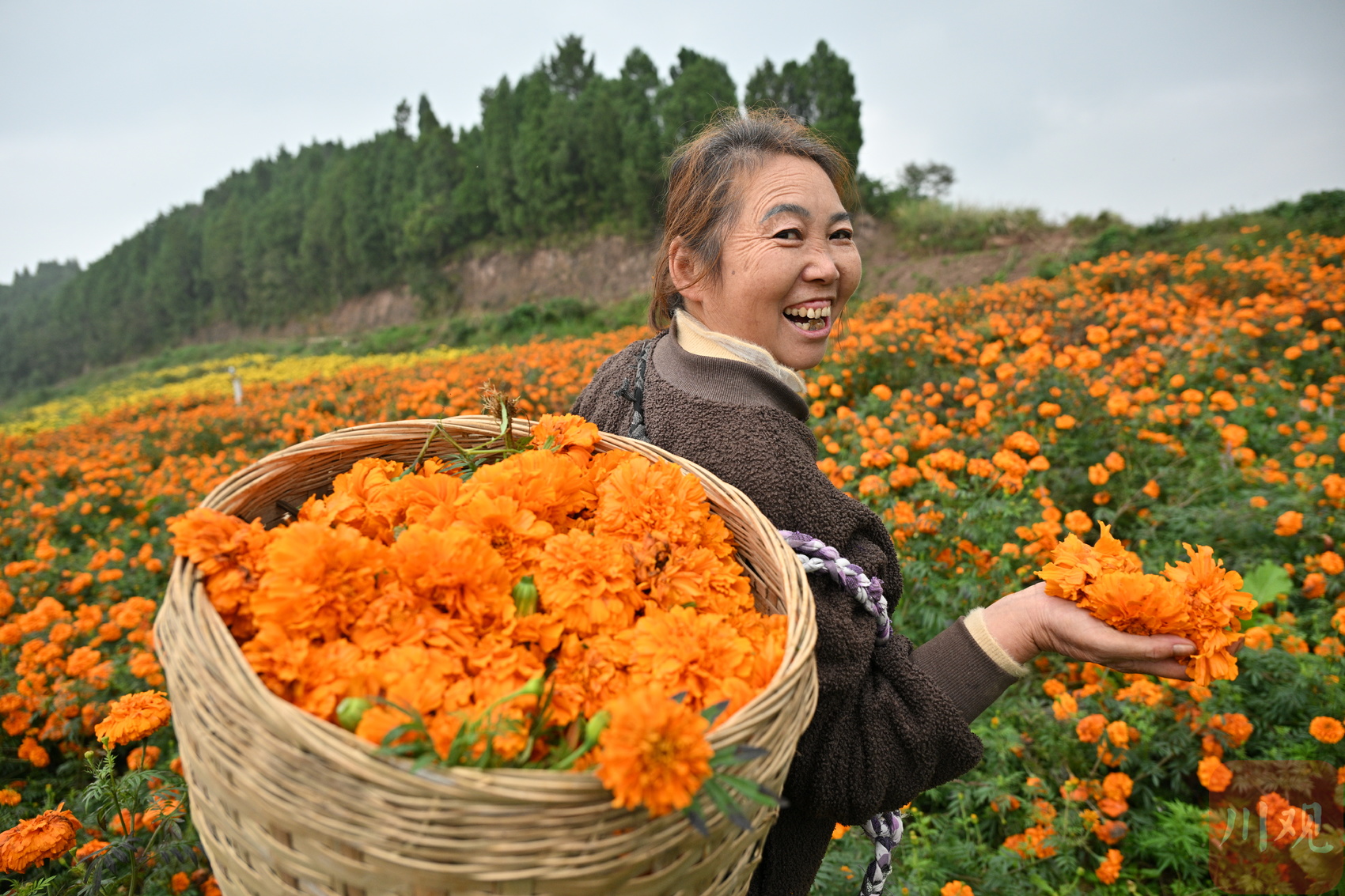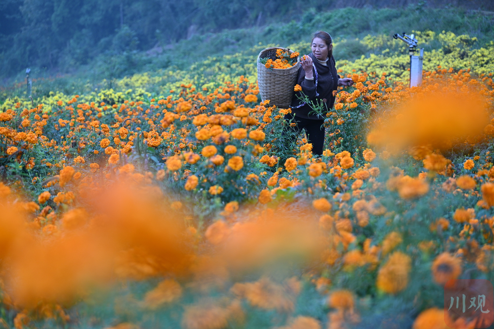 11月4日下午,德阳市旌阳区双东镇金锣桥村的金锣鸣菊产业园迎来了菊花观赏期和丰收期。