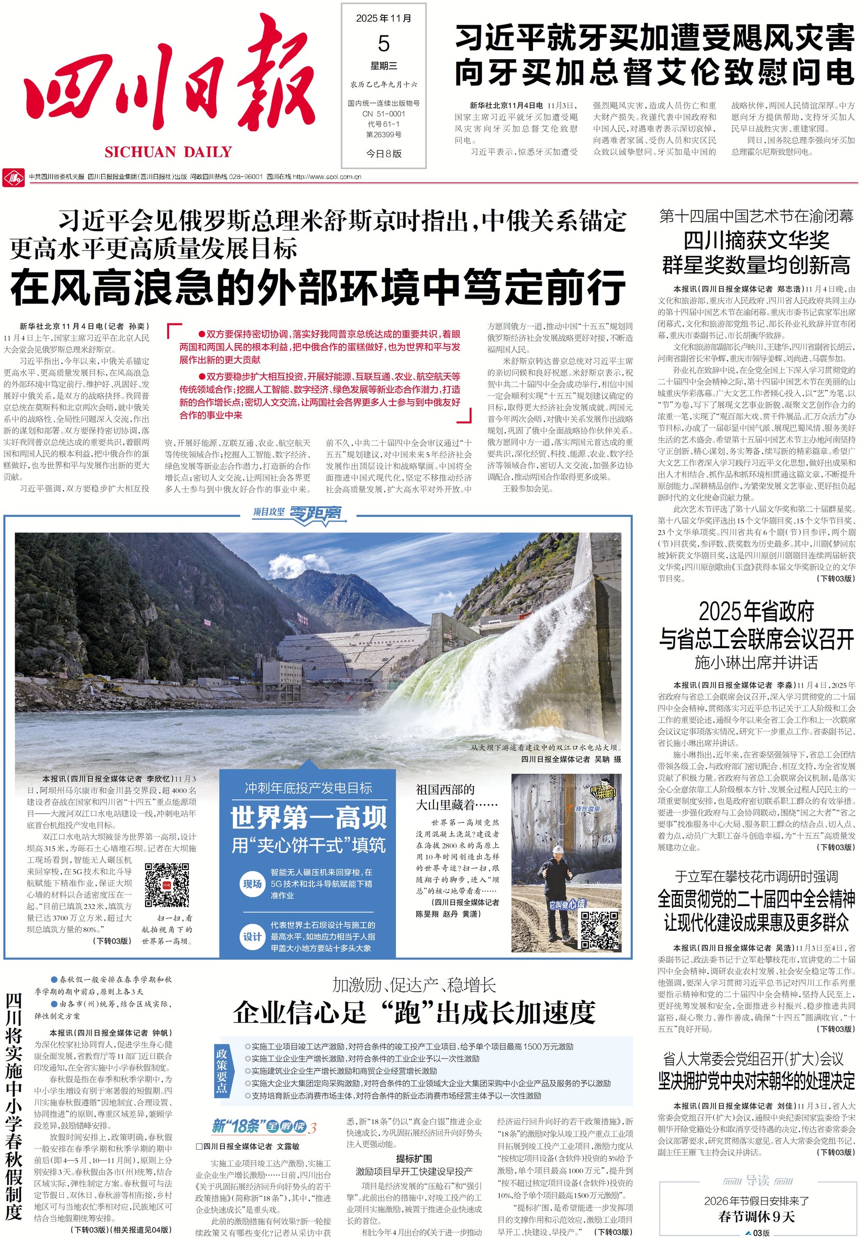 11月3日,阿坝州马尔康市和金川县交界段,双江口水电站大坝施工现场建设正酣。目前大坝已填筑232米,填筑方量达3700万立方米,超过大坝总填筑方量的80%。这座以315米坝高刷新世界纪录的世界第一高坝,堪称水利工程界的“珠穆朗玛峰”。面临“高大坝、高地应力、高水头、高边坡、高强度、高海拔”六大世界级难题,每一处钢筋水泥背后都是“中国建造”的力量!大坝建设还有何亮点,请看今日一版。