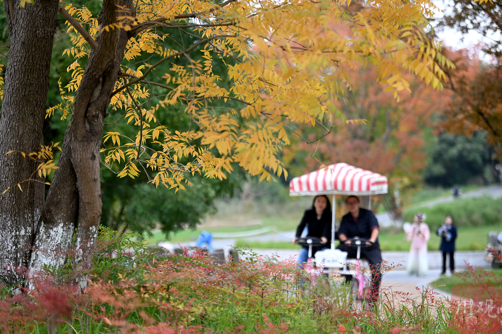 红枫彩林下的游人。