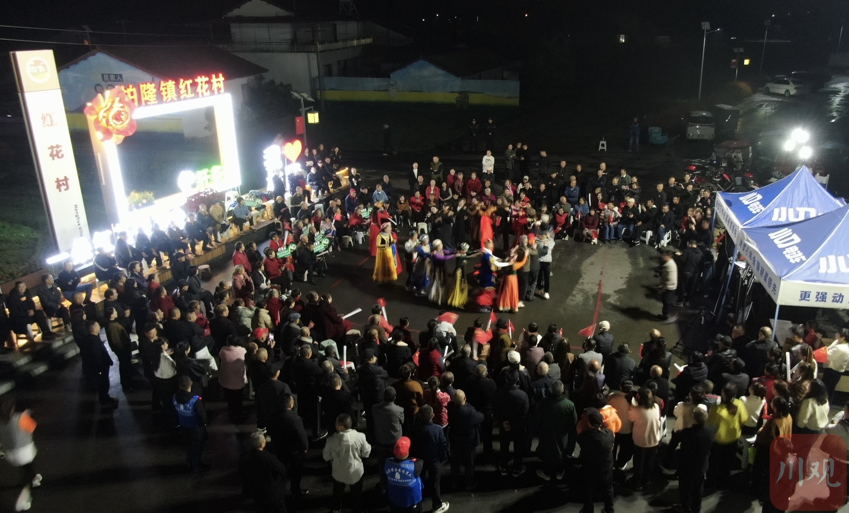 11月4日晚7点,德阳市旌阳区柏隆镇红花村党群服务中心前的“农立方”广场上聚满了热情的村民,欢呼声此起彼伏,红花村第88场“村晚”正式开演了。