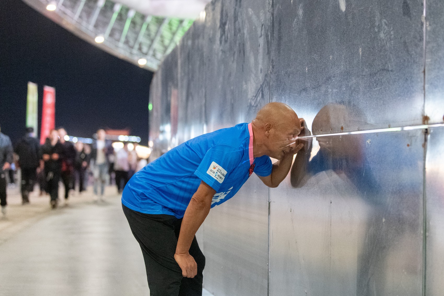 10月12日,“川超”比赛刚开场,一名球迷刚过安检,迟到了,还没走到座位上。“他想看看赛场当时的情况,正好有个挡板缝隙,就凑了过去看了一阵,看了一会后,才去找座位。”这一幕正好被BertZhao拍下来。“这一画面很接地气,就是老百姓看球日常,日常享受看球的感觉。”