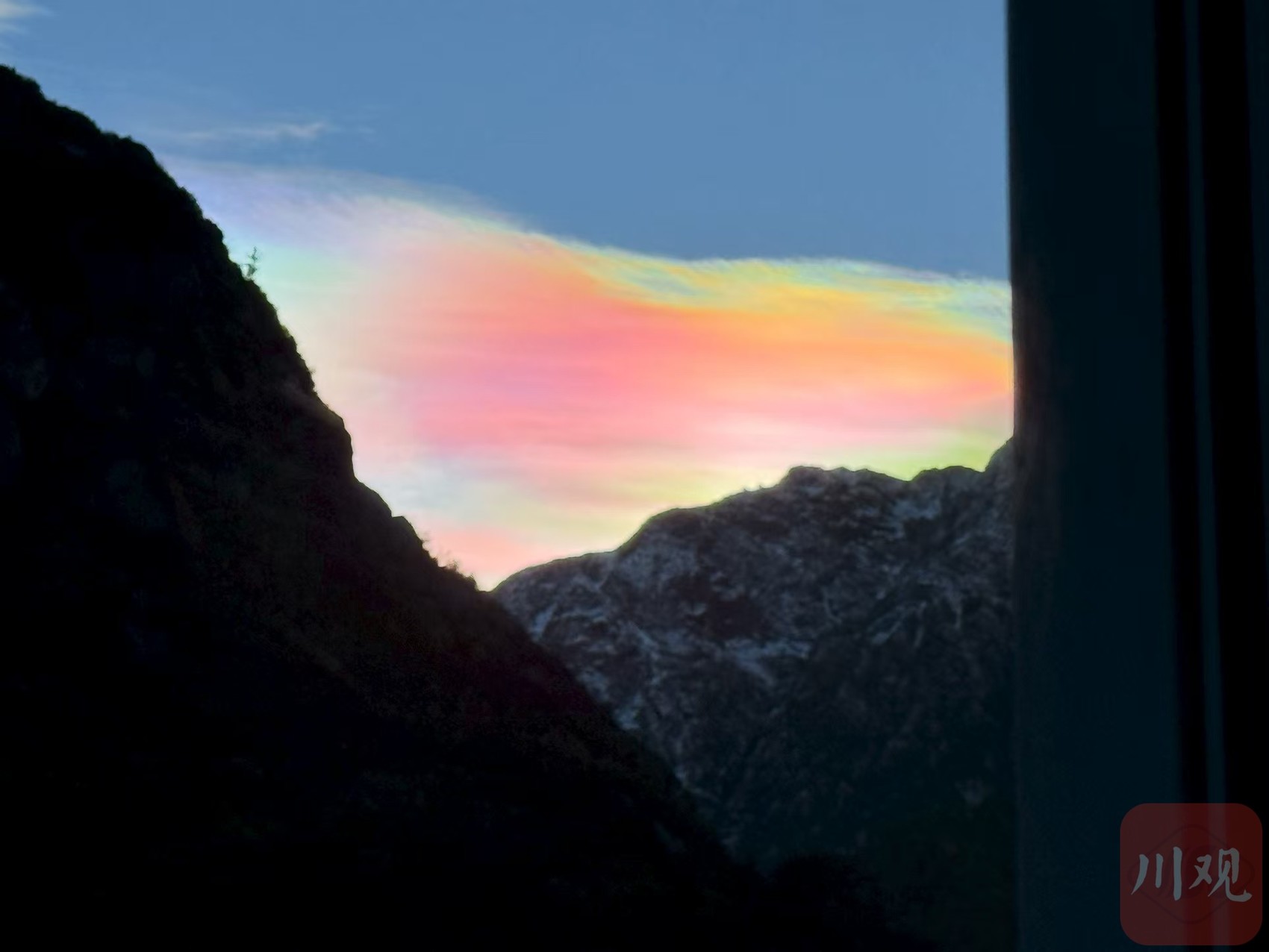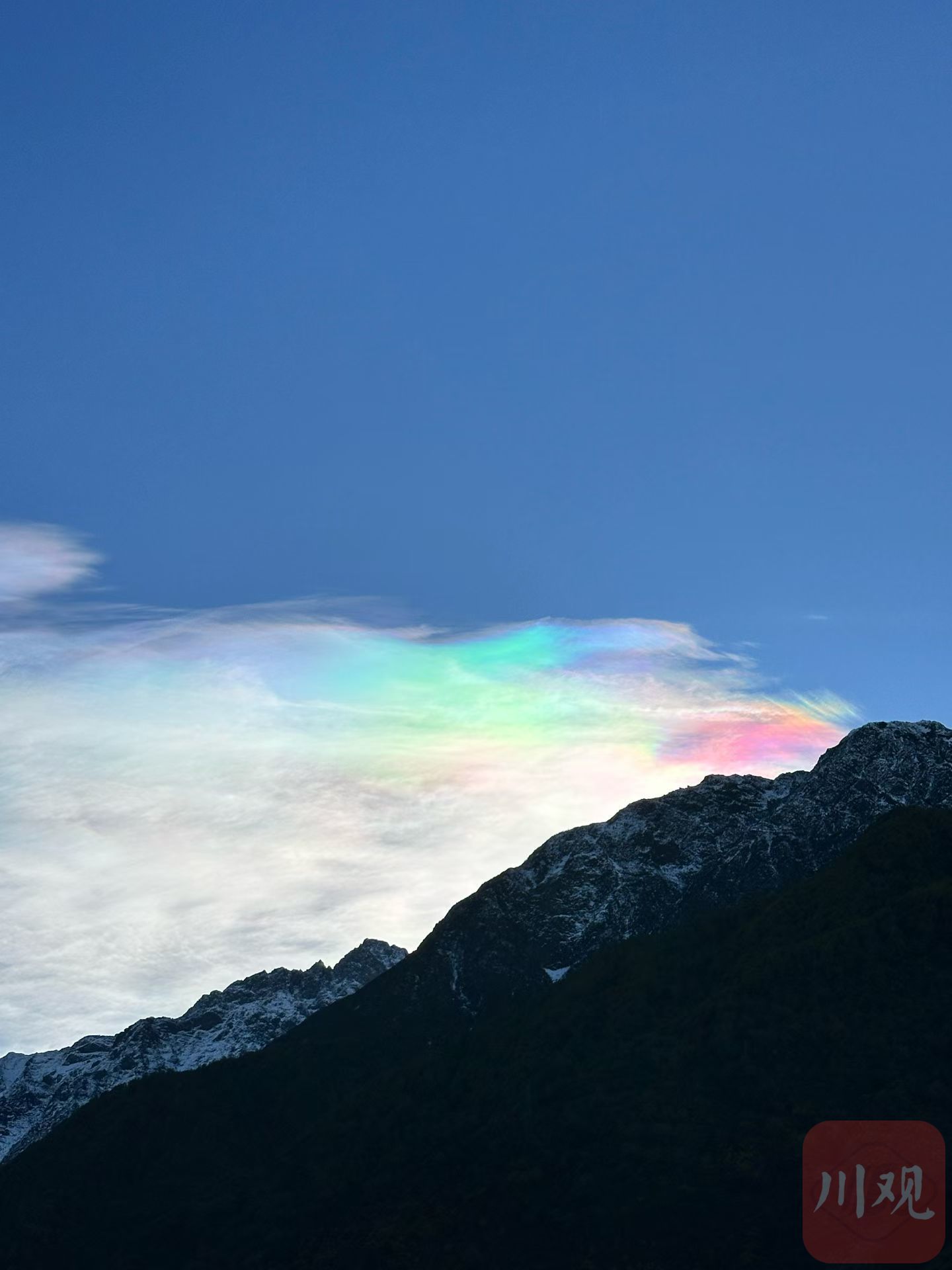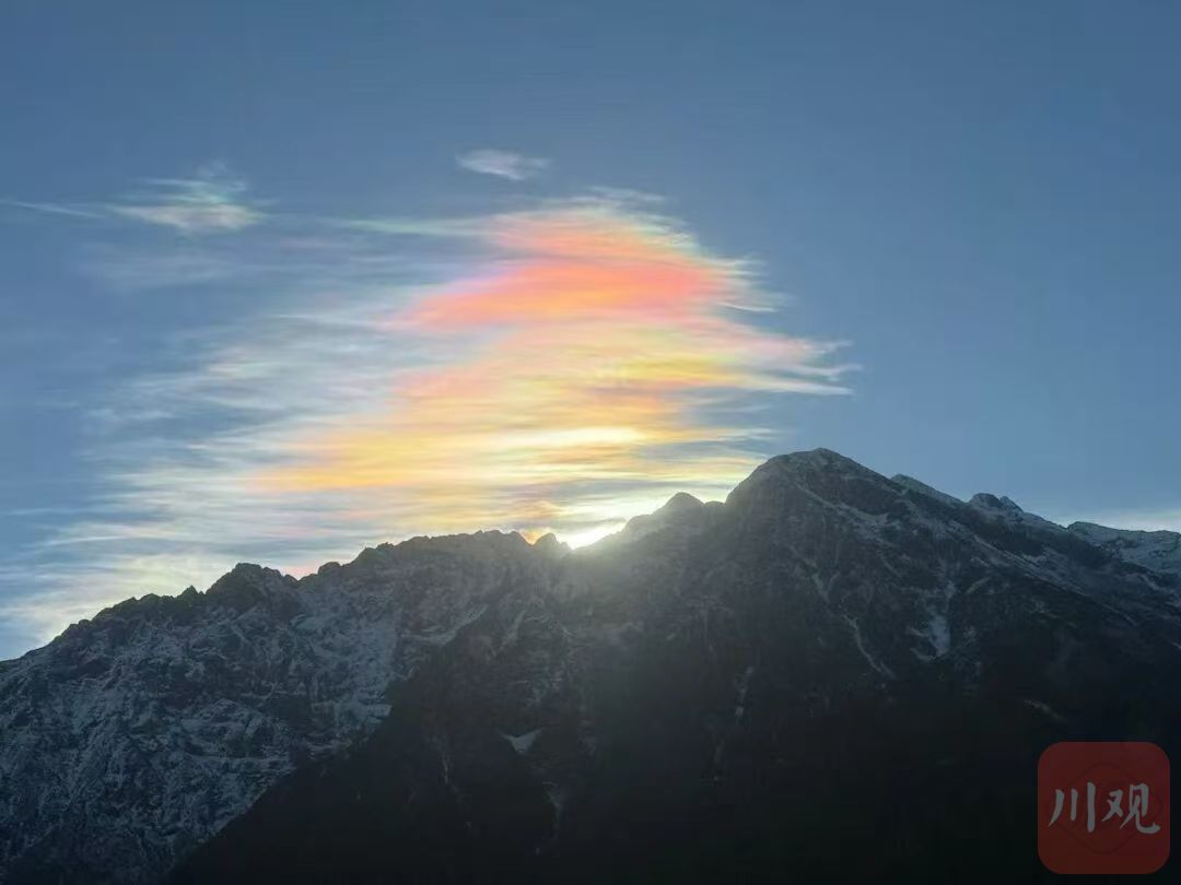 据甘孜州气象台气象预报工程师李天方介绍,“七彩祥云”是一种较为罕见的光学现象,因前段时间康定降水较多,空气中残留的水汽在特定的光射条件下形成。