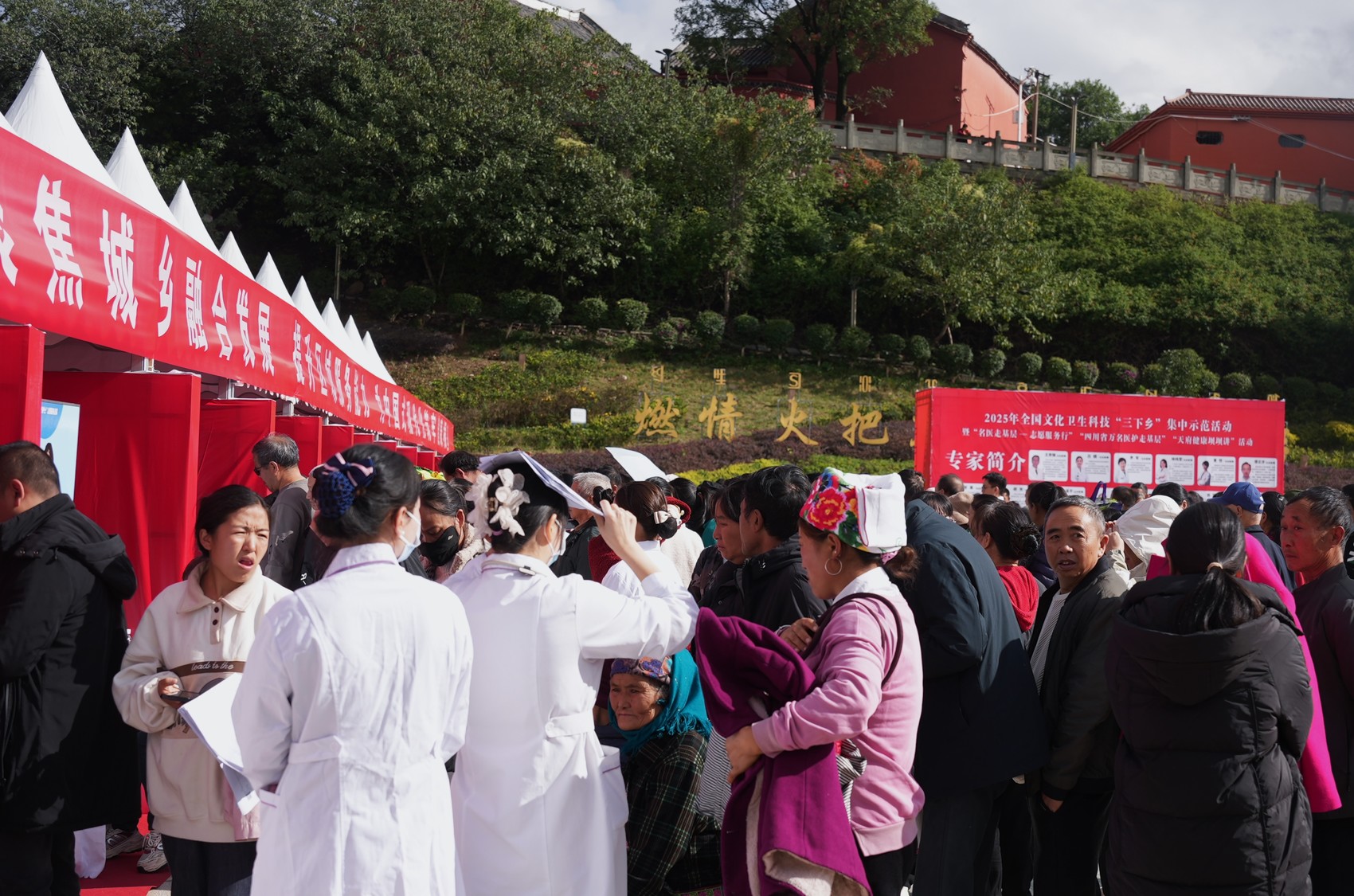 当天的“三下乡”活动,成了精准匹配的“名医门诊”。6名“中国好医生、中国好护士” 志愿服务总队专家、11名“四川省万名医护走基层” 志愿服务总队专家,连同州县30余名医护人员,把内分泌科、妇科等10多个科室“搬”到广场上。