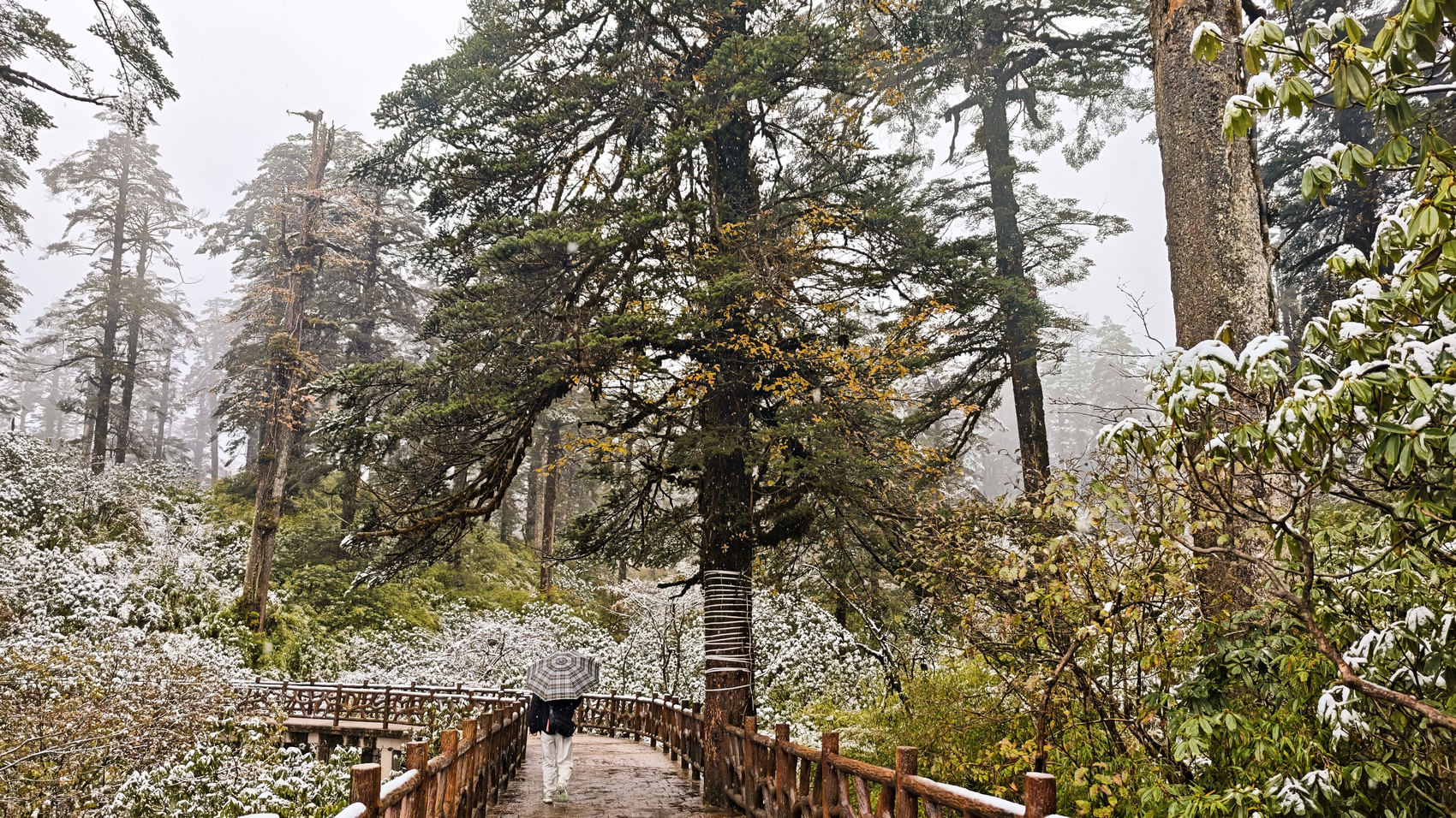 瓦屋山初雪往年多在11月中下旬降临,此次降雪与近年偶现的“早雪”现象相符。不过,因地表温度较高,午间阳光照射后,山巅积雪迅速消融。