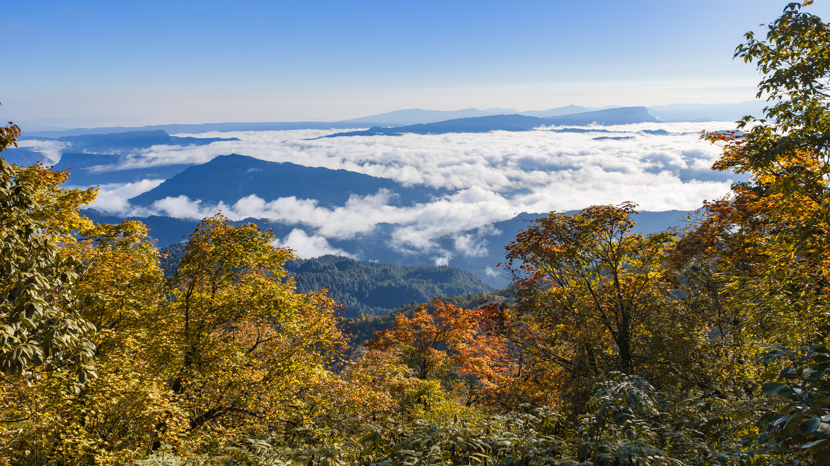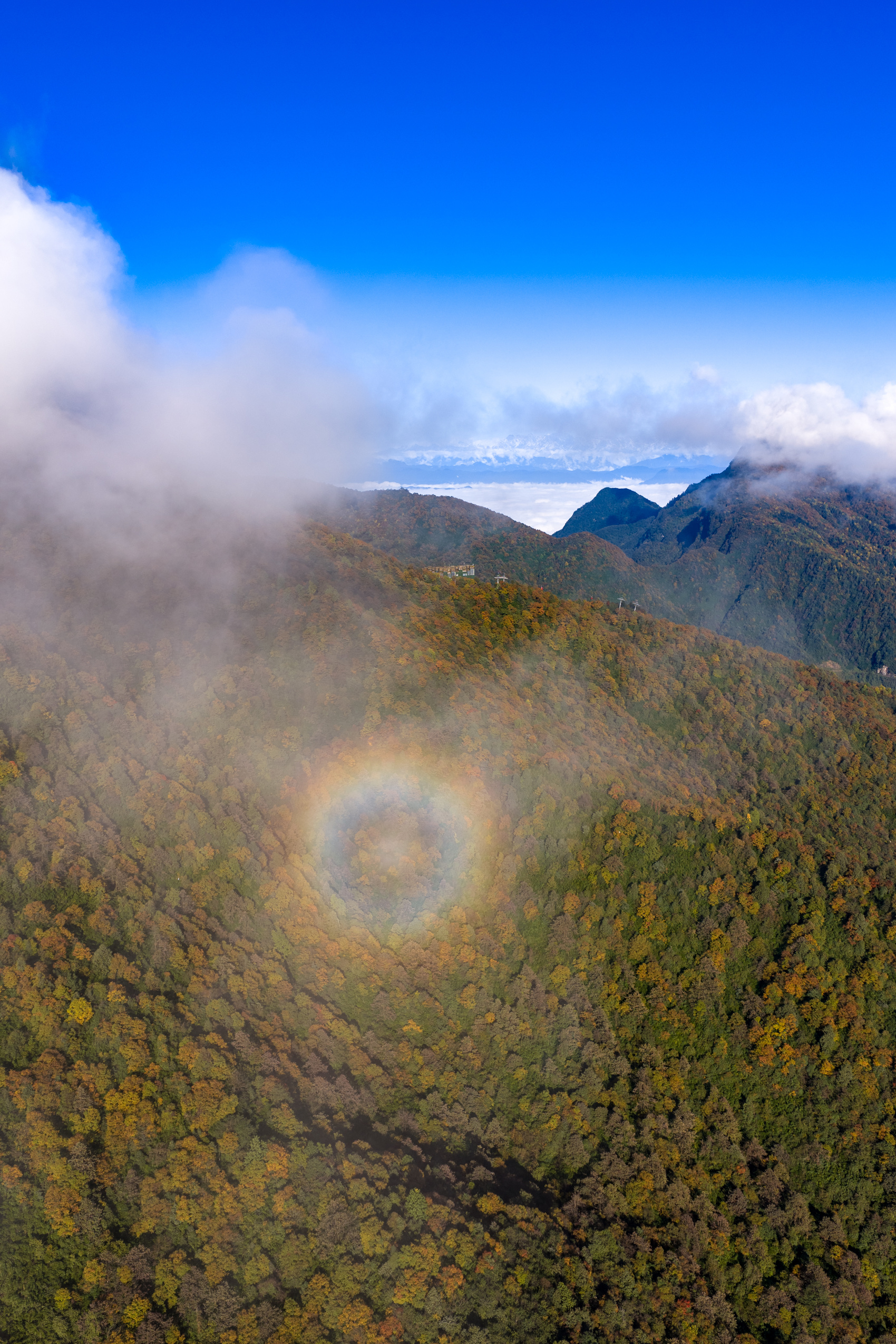 11月1日凌晨,瓦屋山山顶迎来初雪,几小时后积雪消融褪去,海拔1300米以上区域原本被覆盖的彩林随之浮现 ,与云海交织,成为季节交响美景。