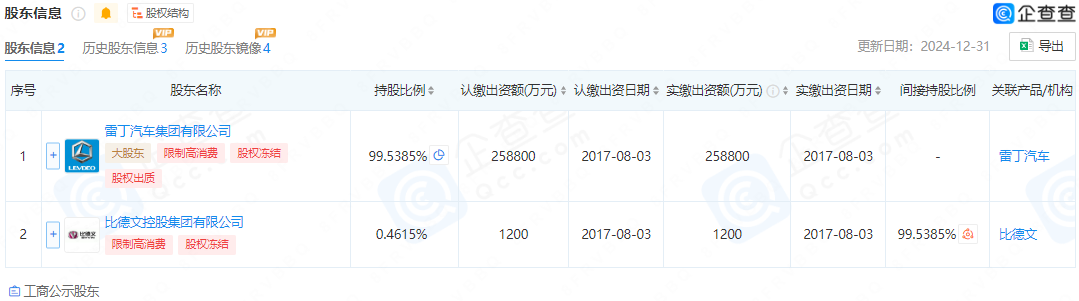 公开资料显示,野马汽车前身为四川汽车工业集团公司,2011年经股份重组后更名,法定代表人为李世伟,注册资本26亿元,经营范围含汽车制造与销售及售后服务,汽车研发,新能源汽车的技术开发、转让、咨询及技术服务,汽车项目投资,汽车租赁等。股东信息显示,该公司由雷丁汽车集团有限公司(下称“雷丁汽车”)、比德文控股集团有限公司共同持股。股权穿透后,野马汽车实际控制人为陆阳富。
