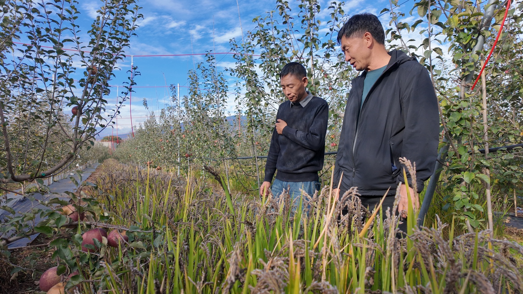 苹果树下长出旱稻