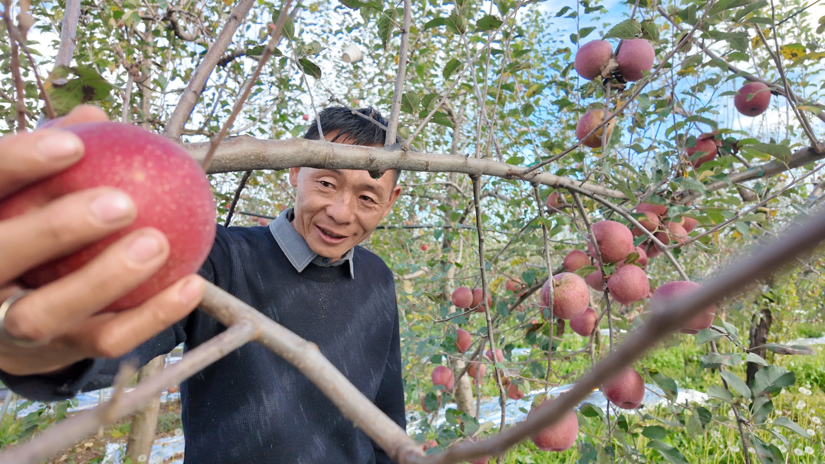 朱光伟在采摘苹果。