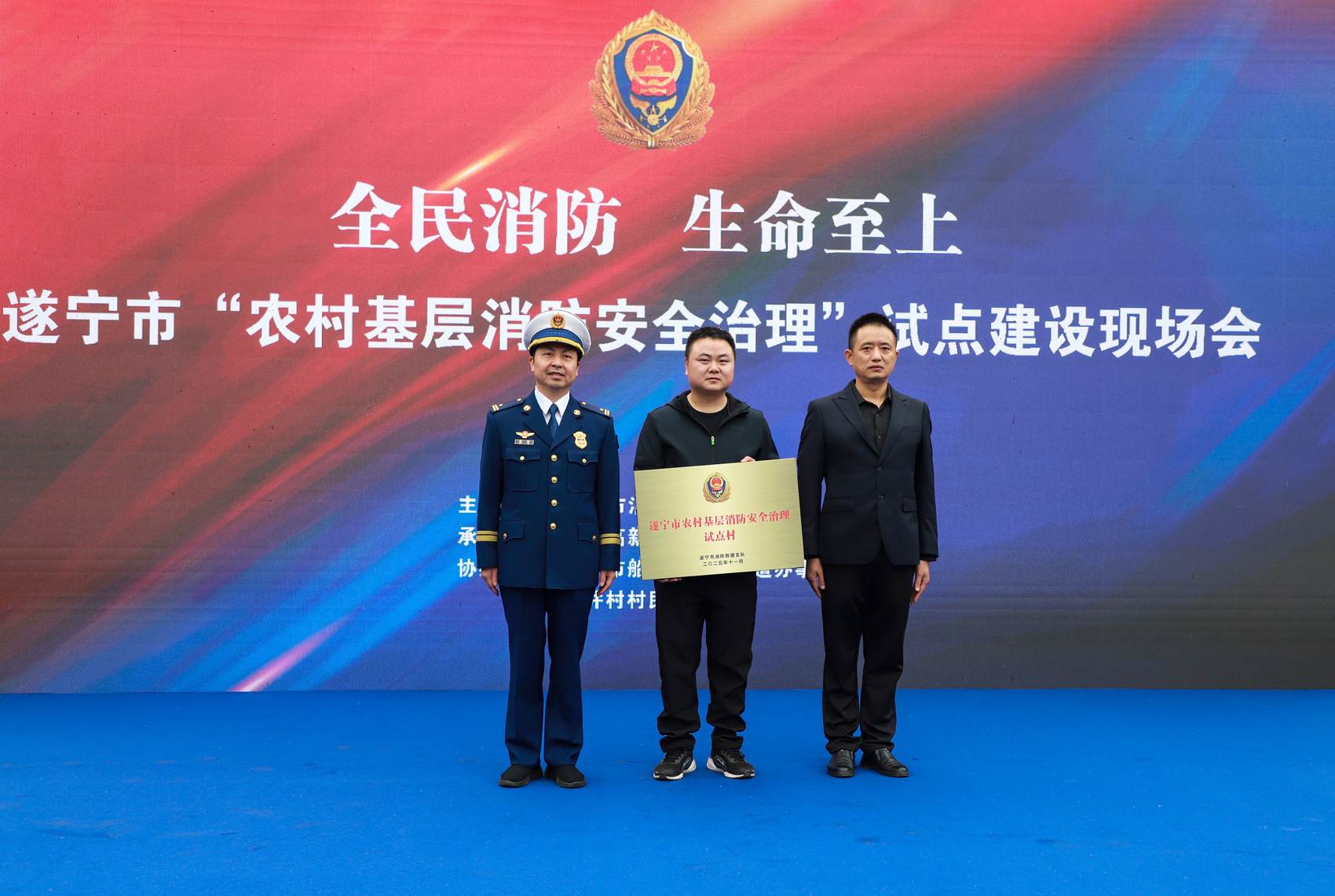 遂宁市消防救援支队授予兰井村“遂宁市农村基层消防安全治理试点村”荣誉牌匾