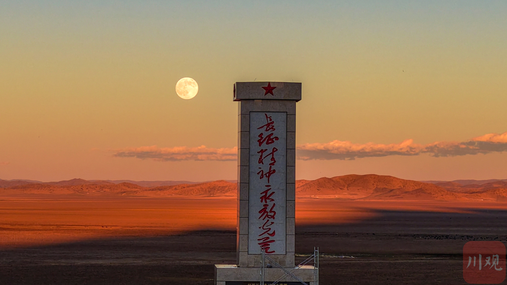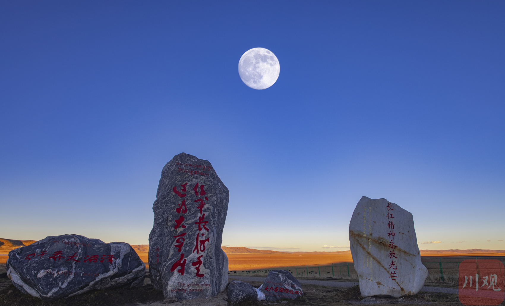 11月5日,四川省阿坝州红原县瓦切日干乔红军长征过草地纪念地,月亮皎洁高悬。C视觉签约摄影师 王庆新 摄