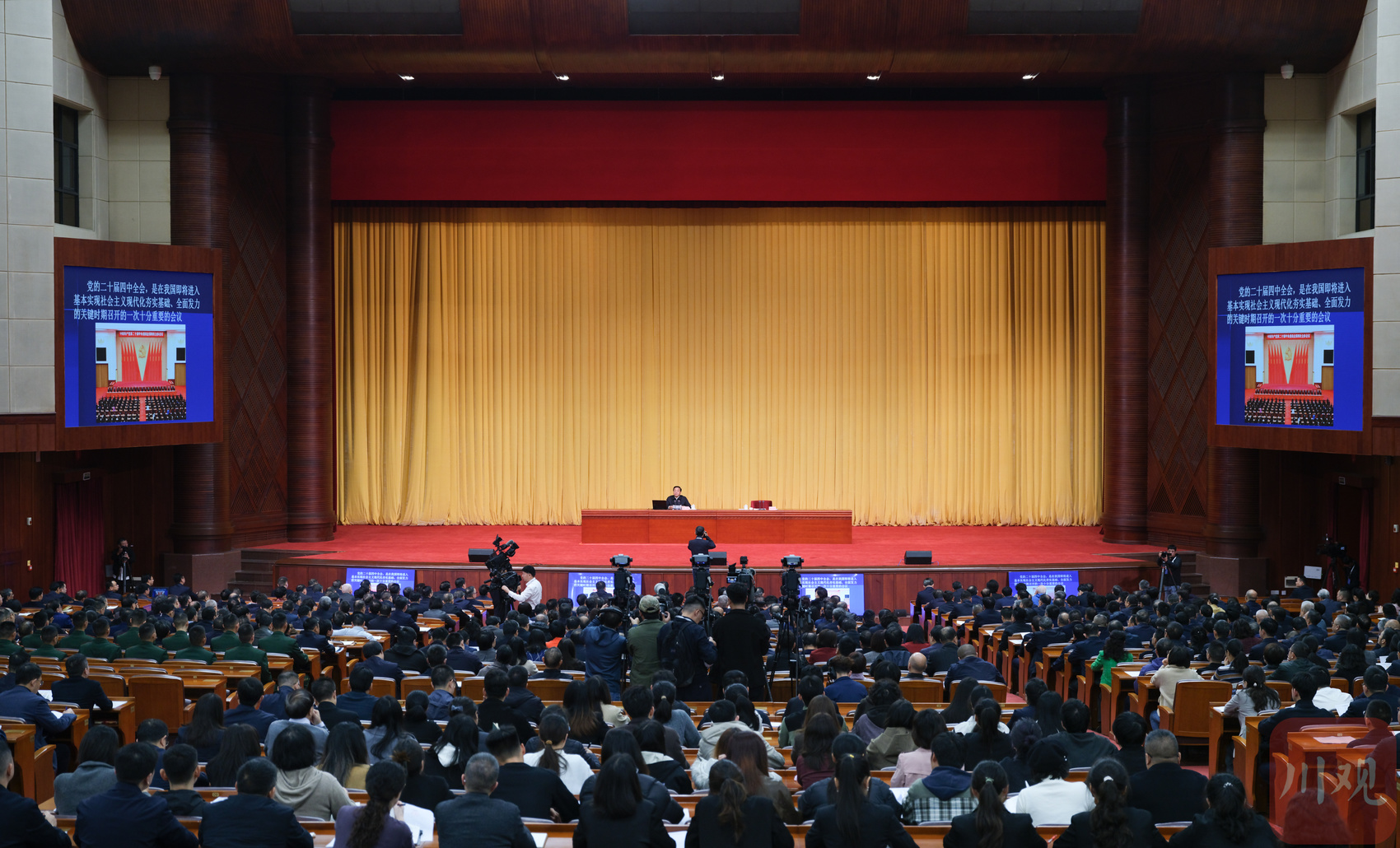 根据党中央统一部署,学习贯彻党的二十届四中全会精神中央宣讲团报告会在成都举行。报告会以电视电话会议形式召开,各市(州)、县(市、区)设分会场。