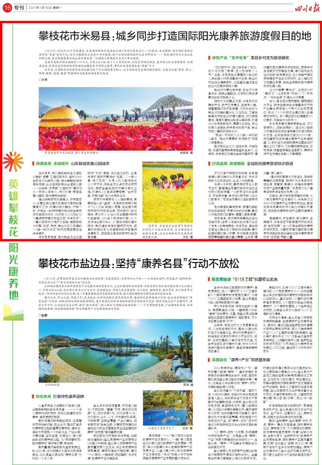 基础提升、产业提升、服务提升、品牌提升,米易县正不断擦亮天府旅游名县“金字招牌”,全力打造全域阳光康养旅游示范区,为攀枝花建设国际阳光康养旅游目的地和成渝地区阳光康养度假旅游“后花园”贡献力量。