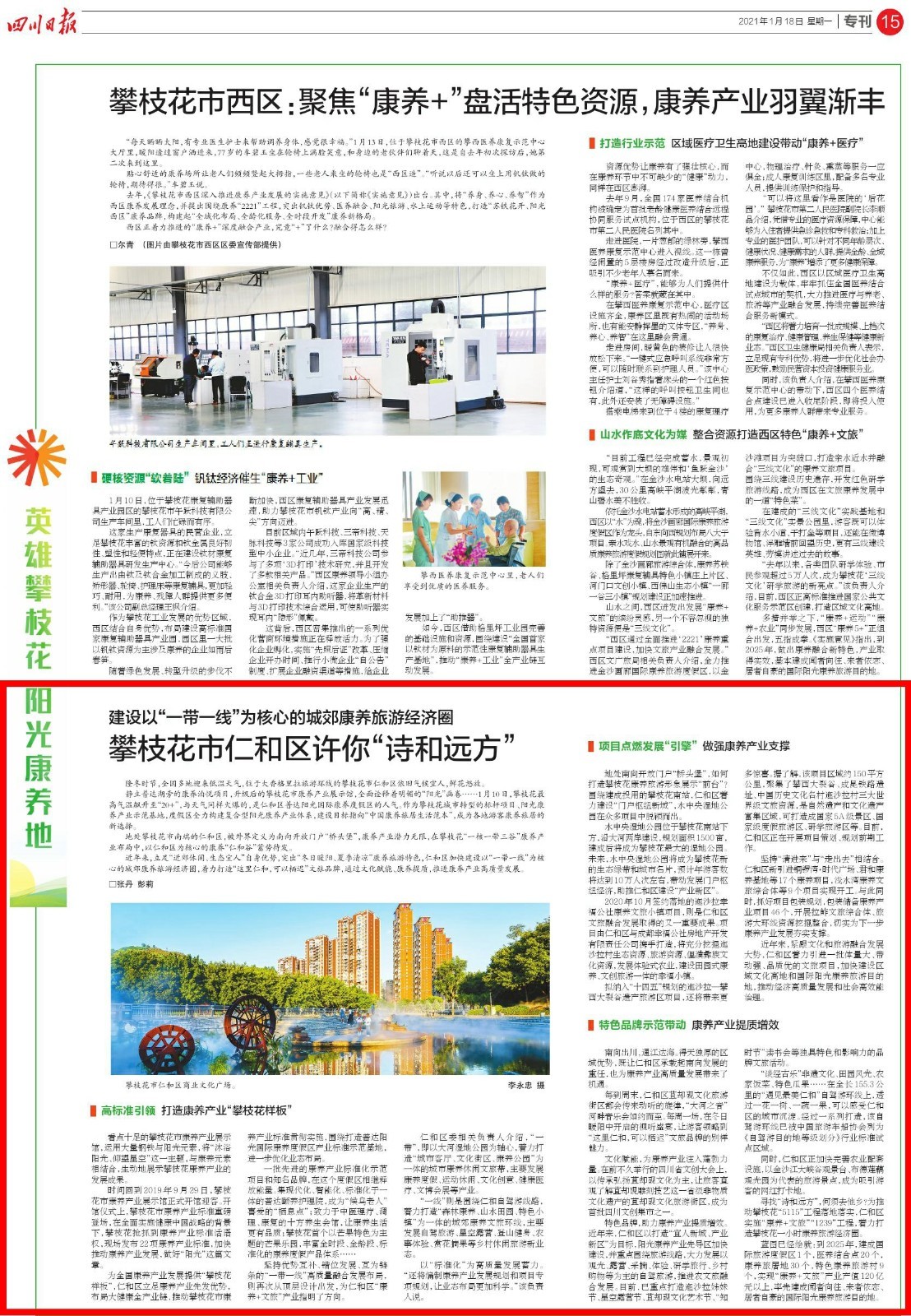 为全国康养产业发展提供“攀枝花样板”,仁和区立足康养产业先发优势,布局大健康全产业链,推动攀枝花市康养产业标准贯彻实施,围绕打造普达阳光国际康养度假区产业标准示范基地,进一步优化业态布局。