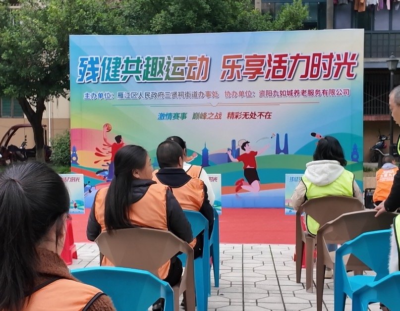 11月5日,资阳市雁江区三贤祠街道狮子山小区内,一场残疾人趣味运动会正在进行。参赛者们挥舞着羽毛球拍,眼神专注、动作认真,在赛场上卯着劲比拼。本次活动以“残健共趣运动 乐享欢乐时光”为主题,共设置六个赛事项目,分别为羽毛球、击保龄球、堆杯子、乒乓球传递、筷子夹球、沙包投掷。33 名残疾人分为六个队伍参赛。