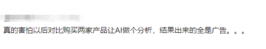不少网友表示,购物时,别轻信AI的推荐。