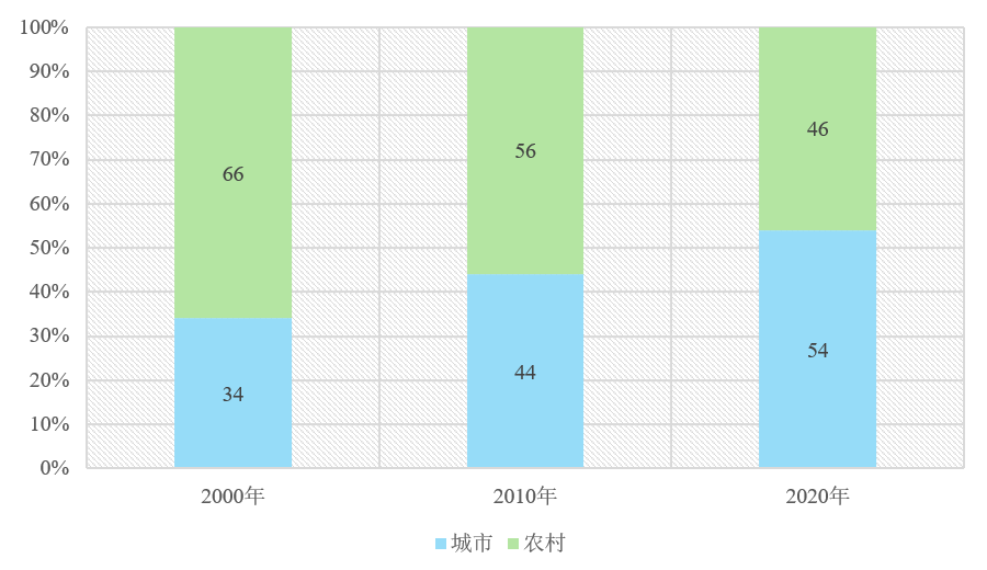 图2 中国城乡老年人口分布。数据来源:国家统计局。