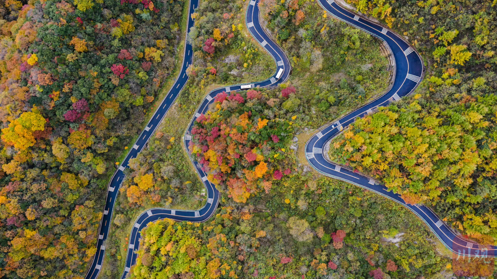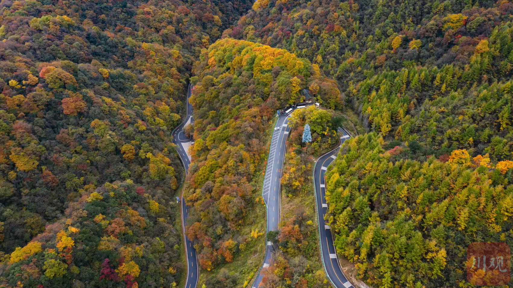 11月6日,巴中光雾山。香炉山隧道行进在彩林间。