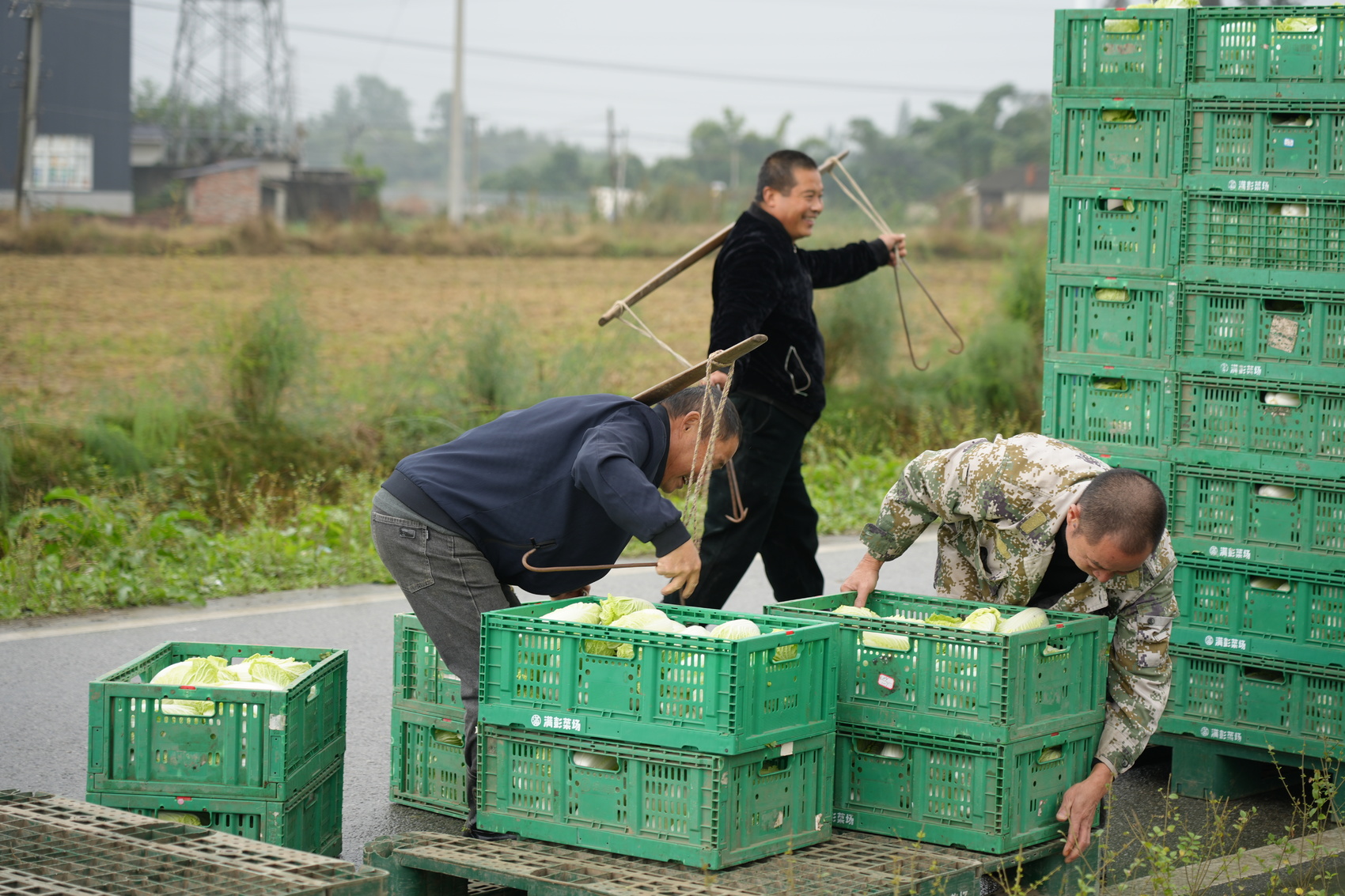 本月初,成都本地娃娃菜上市。当天,康之缘家庭农场接到了三笔订单,总计近3万斤。不料,连绵的雨水让采收工作几度中断,进度较预期滞后不少。“老李莫急!等会儿我抽几个人去隔壁田砍你的。”听到李勇的请求,蔡飞隔着几辆货车高声回应道。