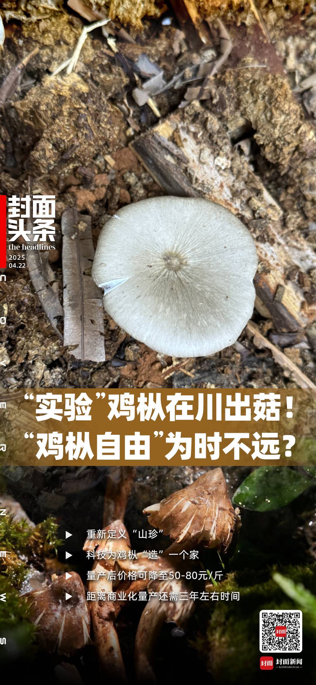 4月21日,封面新闻从四川省食用菌研究所获悉,2025年第一朵鸡枞菌从实验室顺利出菇,而这次鸡枞菌的出菇时间,比去年提前了将近三个月。这是继去年7月,团队首次在实验室成功诱导出鸡枞菌原基,并观察到幼菇破土后的再次突破。