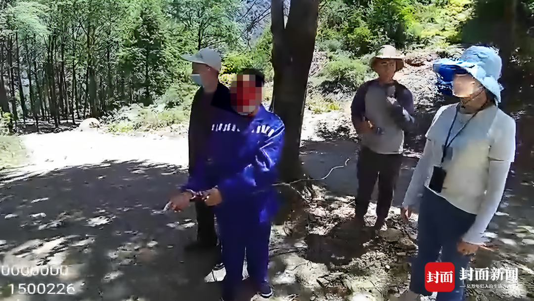 犯罪嫌疑人指认藏匿野生猕猴地点。(达州警方供图)