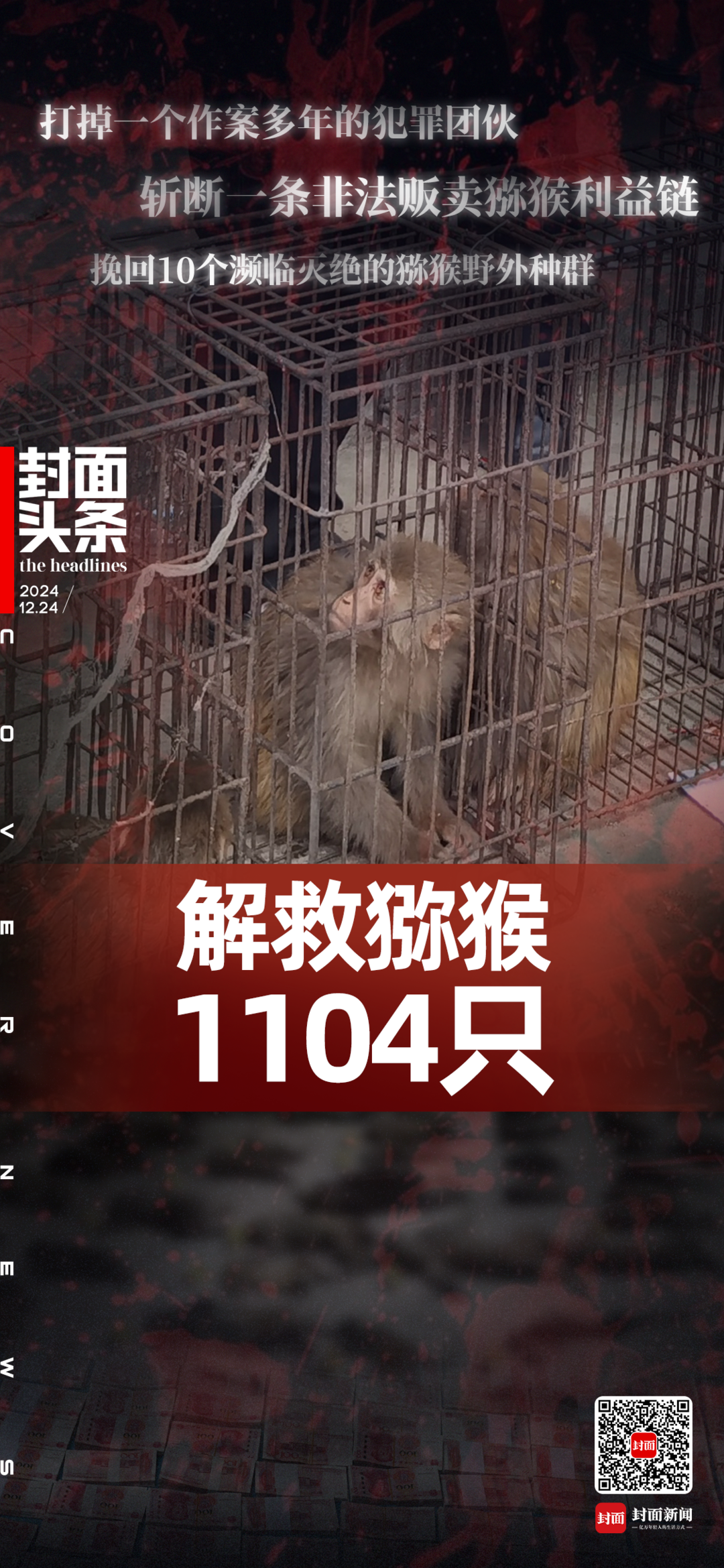 12月24日,封面新闻记者从达州警方获悉,四川达州、甘孜、阿坝警方近日联手侦破一起危害珍贵濒危野生动物案,查扣涉案猕猴1104只,涉案价值1.36亿元,及时挽回10个濒临灭绝的猕猴野外种群。