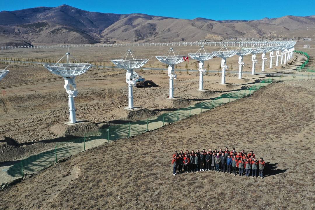 圆环阵太阳射电成像望远镜由313个直径为6米的抛物面天线组成。2022年11月,圆环阵的最后一根天线建成。