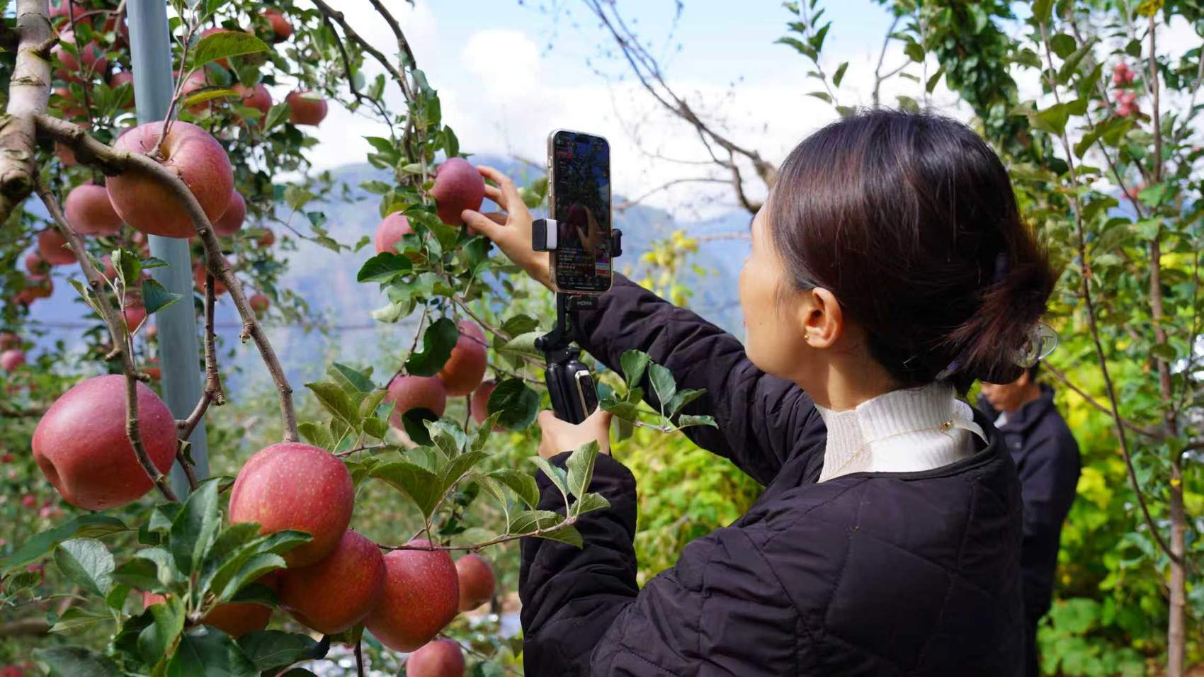 这里的苹果不提前采摘,不批量囤货。客户下单后,果农才去树上挑选最成熟的果子,真正做到“以销定采”。