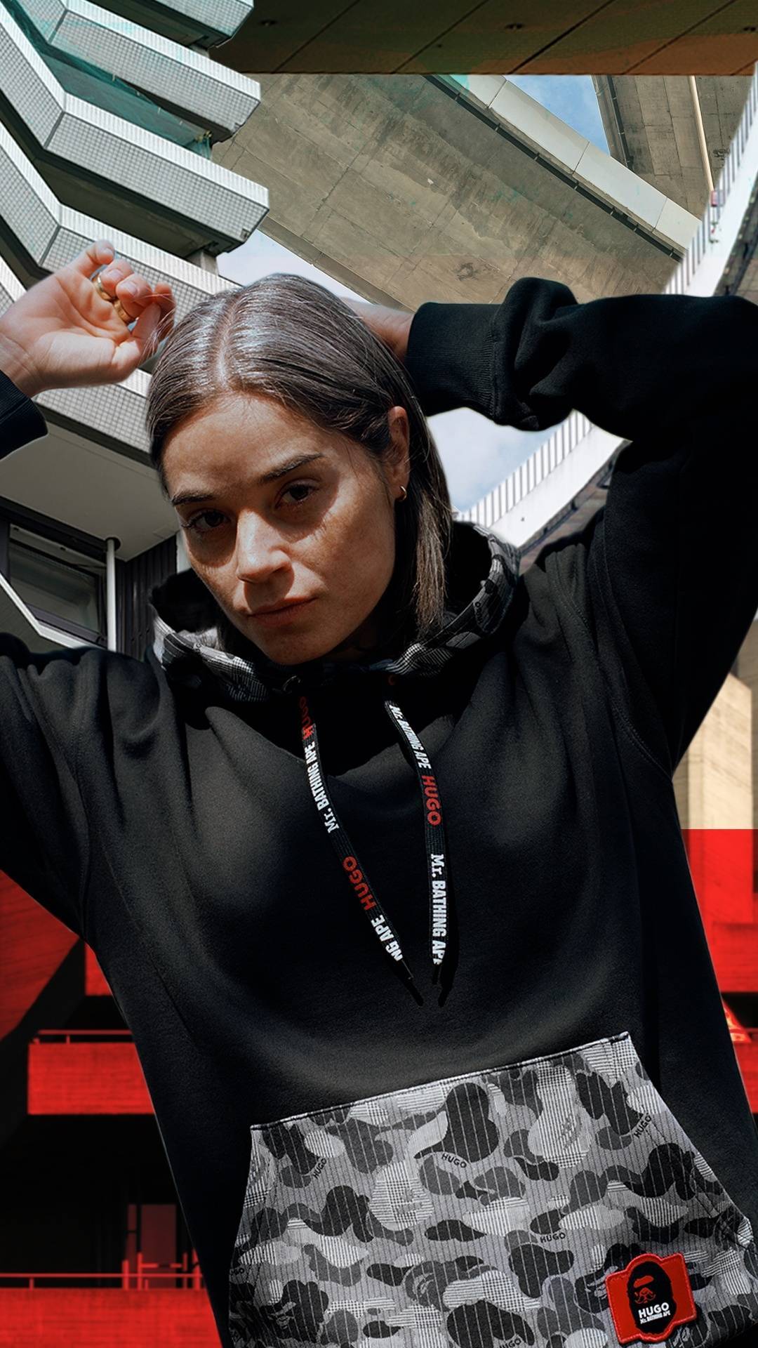 自今年夏季起,两个风格独特的品牌将携手合作设计HUGO x Mr. Bathing Ape限量版胶囊系列,藉由街头风尚新释品牌的标志性设计。2022早秋系列聚焦重构经典的BAPE CAMO迷彩图案,辅以HUGO红色元素。街头着装达人可以尽情选择涵盖帽衫、运动裤、夹克、短裤和徽标T恤等经典款单品。原创配饰囊括滑板、帽子、袜子和基础款内衣,皆搭载个性的联名标识。