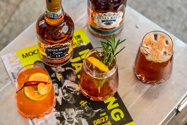 黄潇率领团队在决赛现场打造了全新的“MOCKINGJAY厂牌”,以嘻哈音乐为灵感,将流行音乐歌单融入鸡尾酒创作中。“MOCKINGJAY厂牌”的指定基酒为芝华士13年美国黑麦桶,他们将这款潮流威士忌与中国传统的龙井茶、栀子花和茉莉花进行调配,呈现了精彩的鸡尾酒创意和团队的默契配合。另一款自选鸡尾酒以芝华士水楢桶为基酒,加入红茶粉并融合柑橘类水果的酸度和小米辣的辛辣,带来了新颖且丰富的味蕾体验。