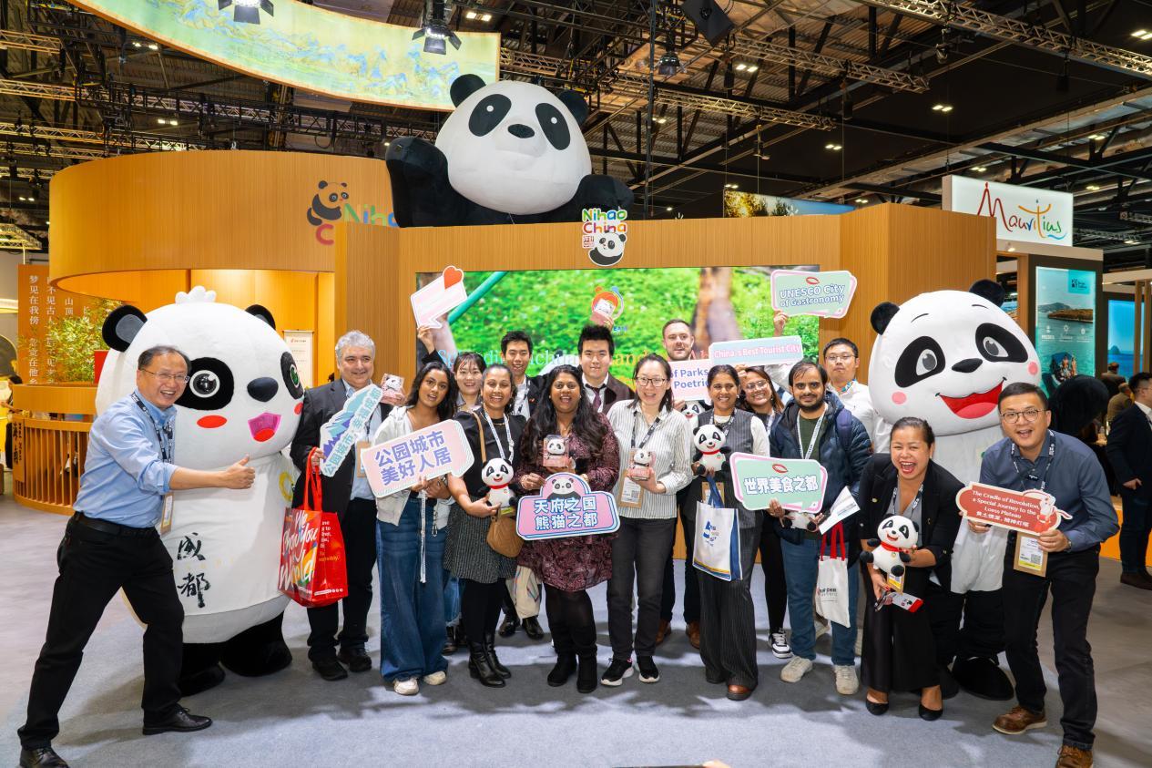 展会期间,四川在中国馆舞台举办”锦绣天府·安逸四川”专场推介活动,重点推介”锦绣天府·安逸四川”四川文旅资源及线路,及“成都,不只有大熊猫”、九寨沟世界遗产等精品旅游线路,系统呈现了四川文旅的多元产品与独特体验。在展会的重要环节”中国之夜”推广活动中,四川展区凭借其独具特色的非遗和熊猫文创展示、精美的影像资料和互动备受关注。诸多富有四川特色的文化展示,吸引了众多国际企业和媒体关注。