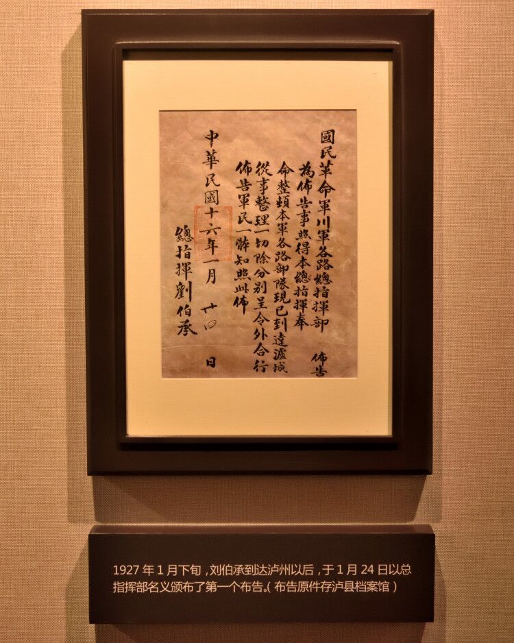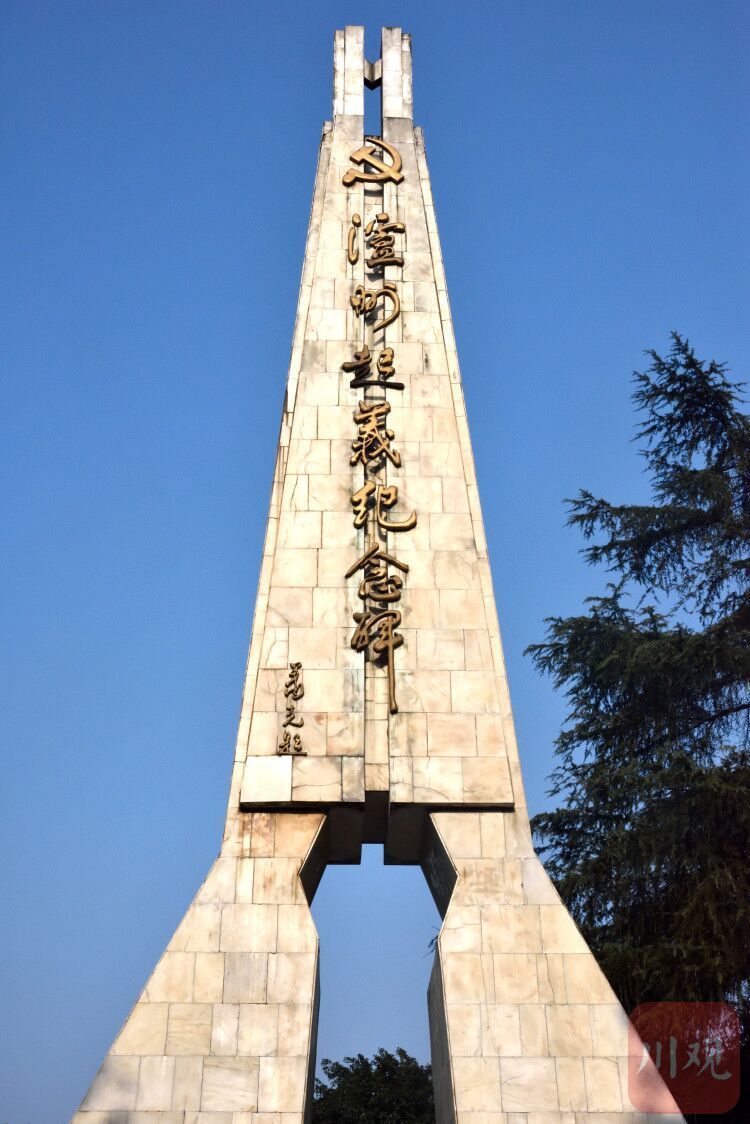 倾泸州全市之力建造的“泸州起义纪念碑”,由萧克将军题写碑文,阳光下七个大字熠熠生辉。