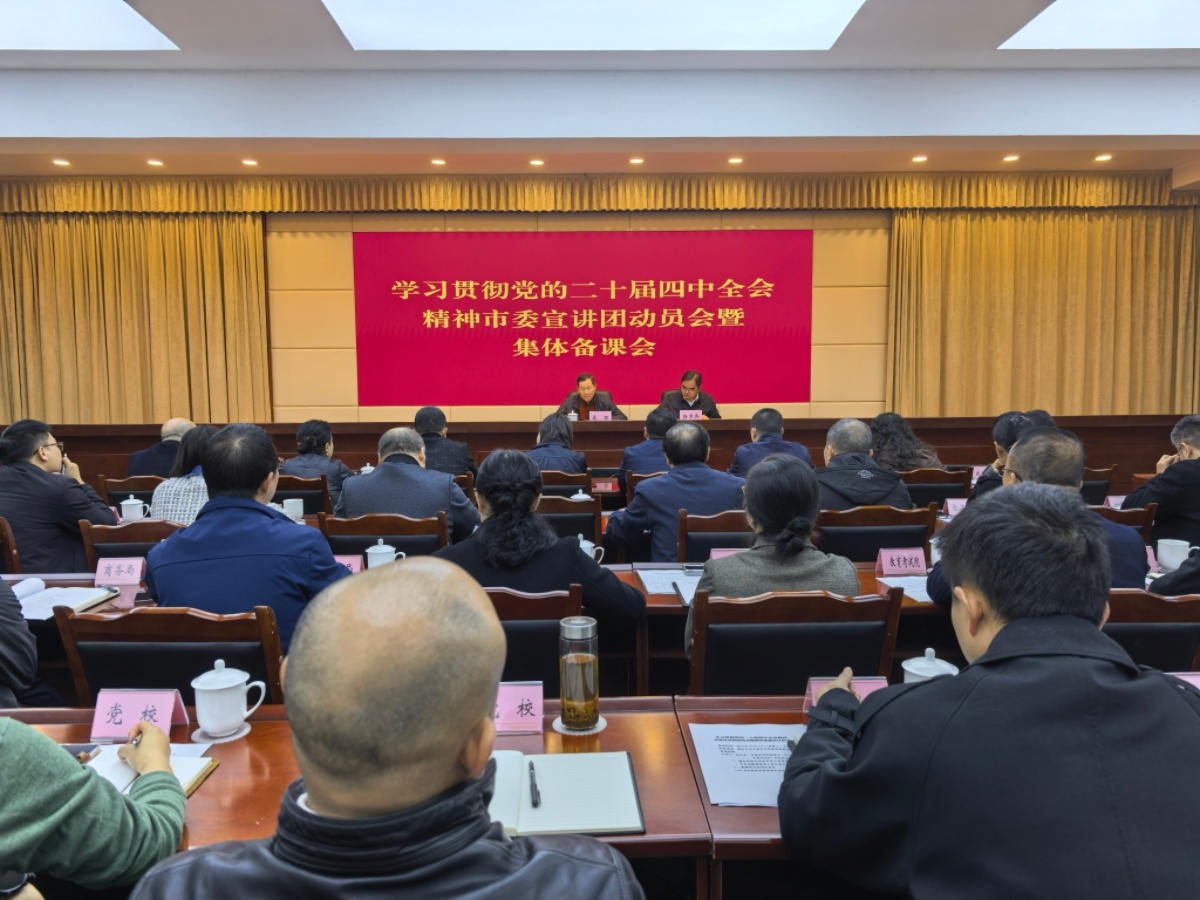 11月7日,雅安市学习贯彻党的二十届四中全会精神市委宣讲团动员会暨集体备课会召开。会议深入学习领会党的二十届四中全会精神,贯彻落实中央、省委关于做好全会精神学习宣讲的部署要求和市委工作安排,正式启动并全面部署雅安集中宣讲工作。