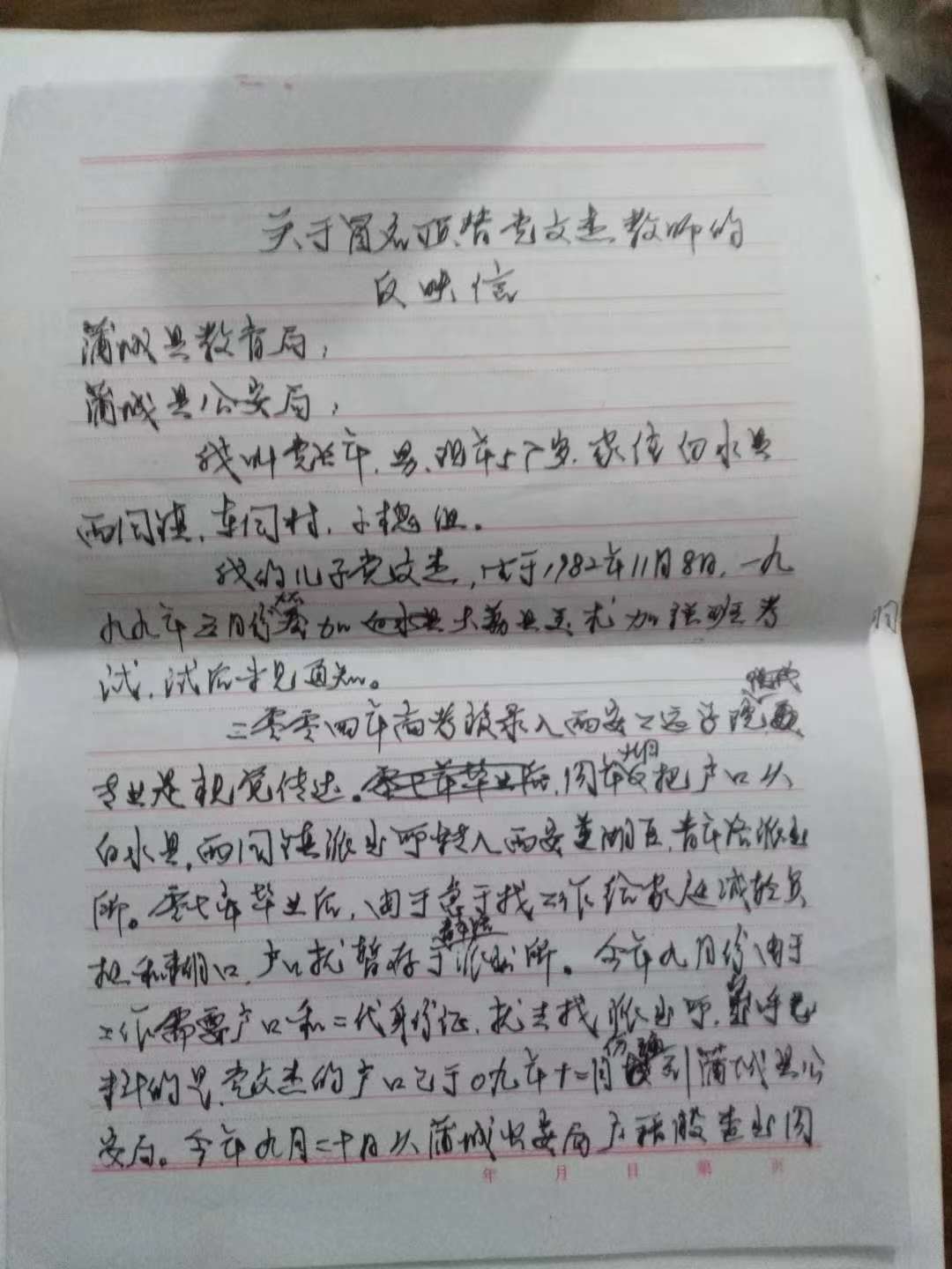党文杰和父亲多次前往蒲城县询问此事,却始终没有进展。2012年10月,党父手写一封反映信,“要求蒲城县公安局查出假冒党文杰的人,把我儿的户籍身份证号码归还我儿;要求蒲城县教育局查出假冒党文杰的教师,终止与我儿党文杰(有关)的一切信息和资料。”