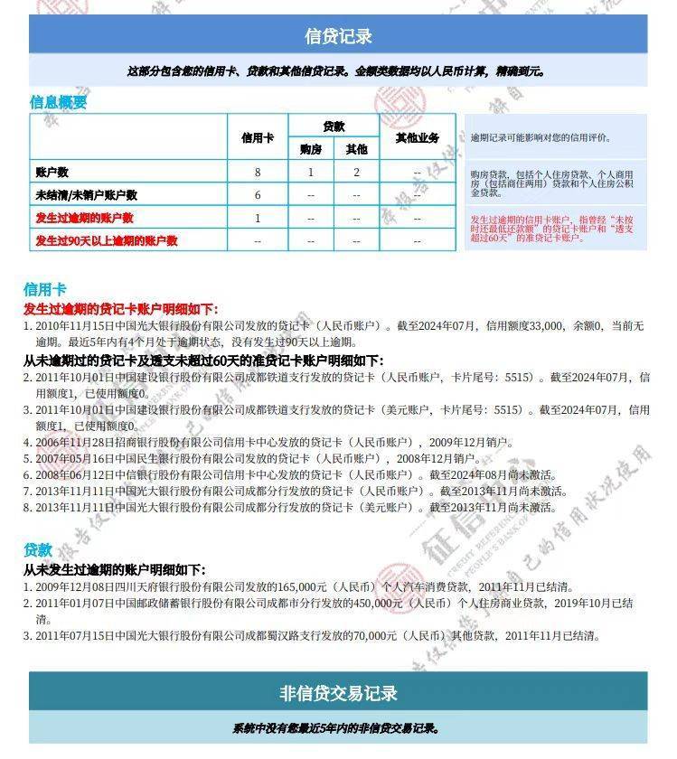 信贷记录显示,2013年11月11日,申请人还在中国光大银行股份有限公司成都分行办理一张贷记卡。