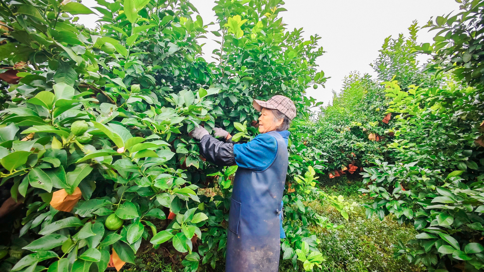果农正在采摘柠檬