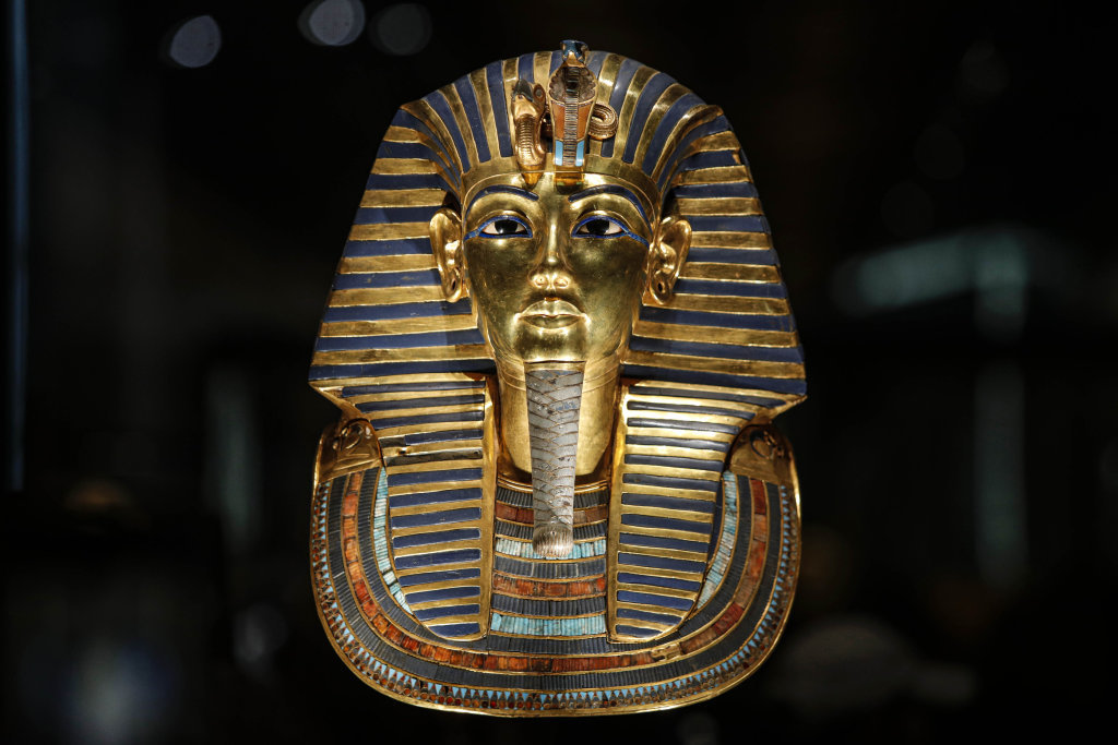 11月4日在埃及吉萨的大埃及博物馆法老图坦卡蒙展馆拍摄的法老的黄金面具。图据新华社