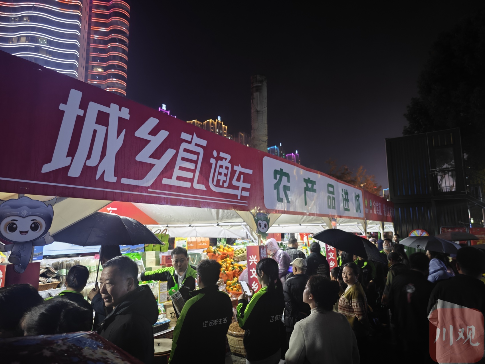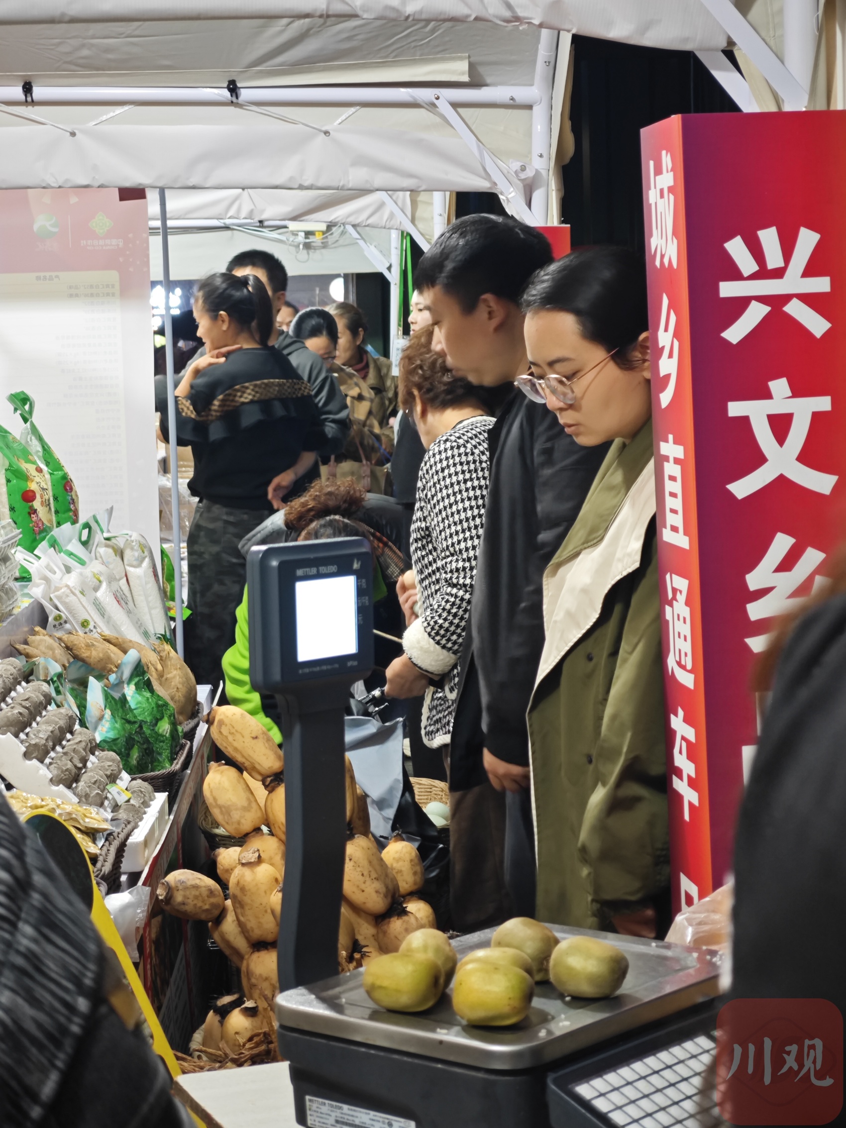 当晚,光明社区广场人头攒动、香气四溢。宜宾燃面、筠连水粉、南溪豆腐干、兴文小龙虾等地标美食吸引众多市民驻足品尝。兴文城乡直通车,将猕猴桃、橙子、鸡蛋、腊味、藕等农特产品送到现场供大家选购;剪纸、刺绣、编织等手工创作吸引老少参与,呈现出“欢乐一家亲”的热烈氛围。