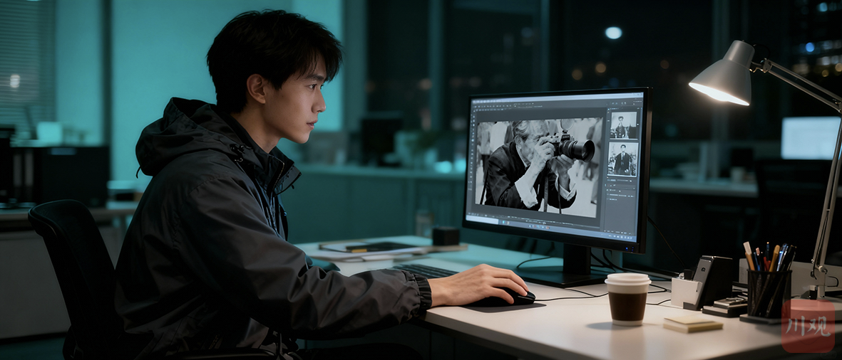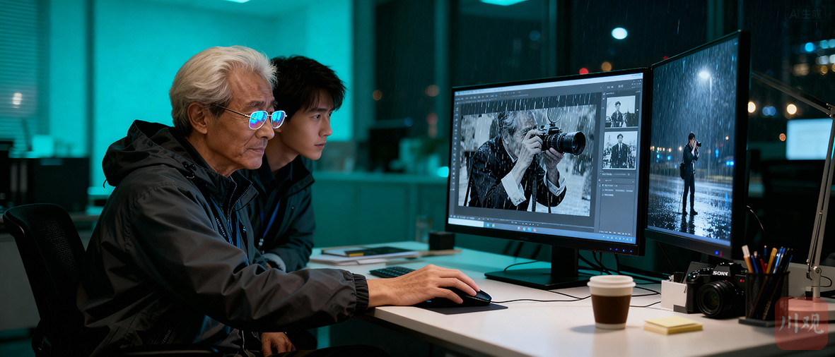 新老新闻摄影记者同屏审片,在深夜工作室里,让新闻摄影的匠心与坚守在数字时代接续传递。