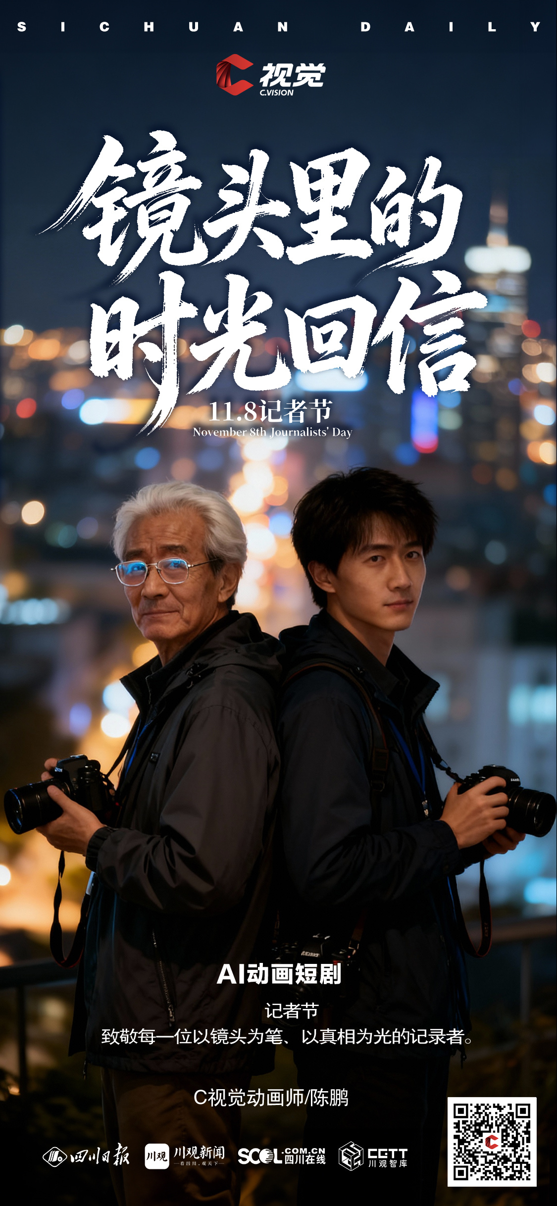 11月8日记者节,四川日报全媒视觉中心动画师精心打造 AI 动画短剧,带您见证新闻摄影事业的薪火相传。