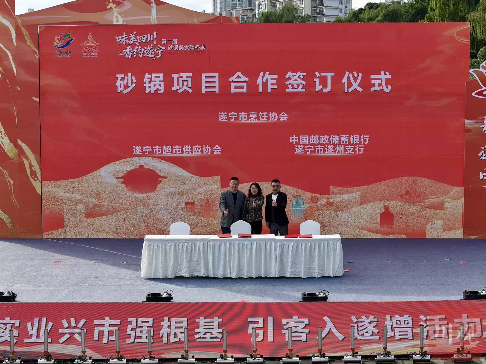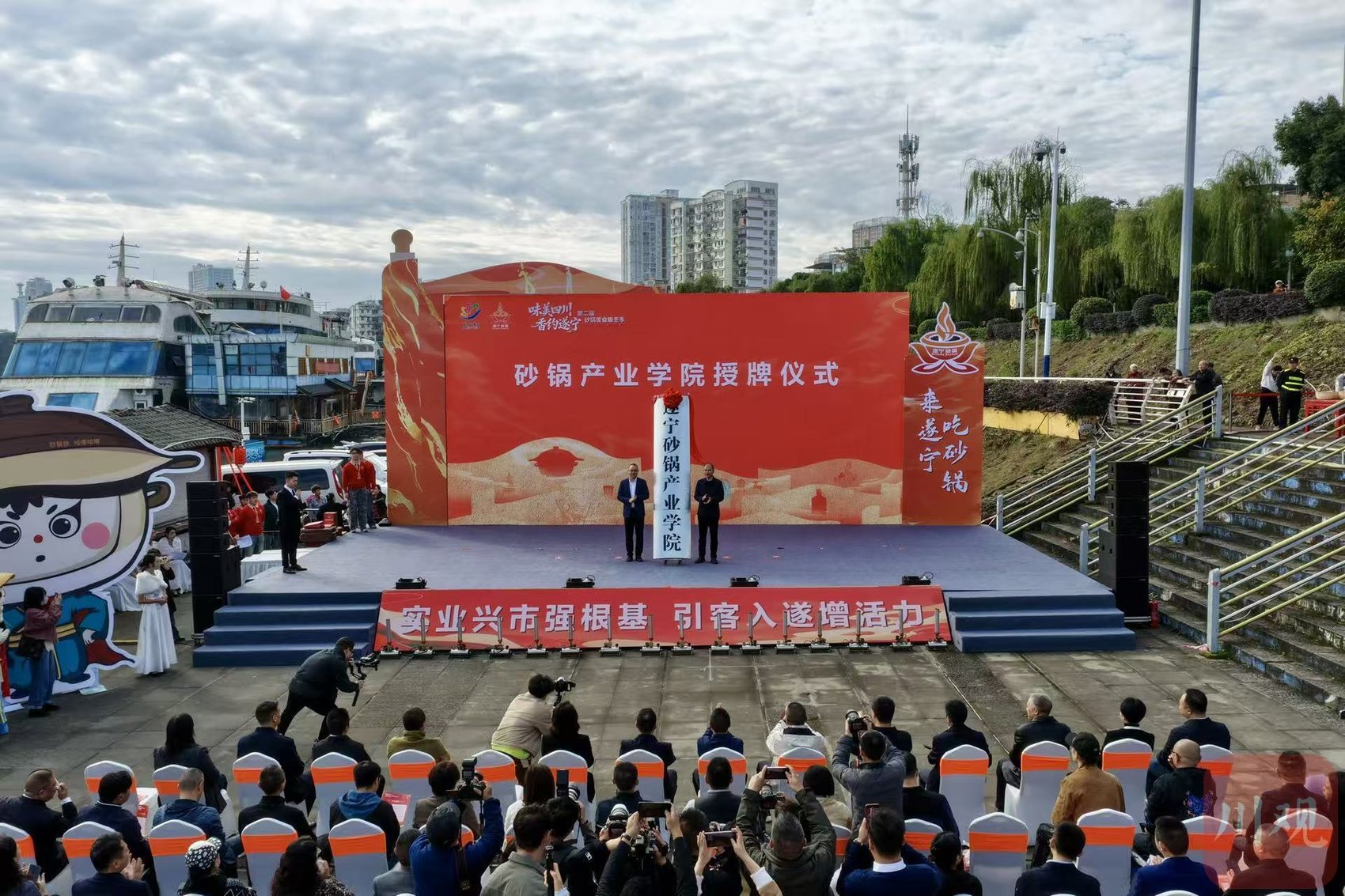 本次活动由遂宁市多部门联合主办、船山区承办,紧扣暖冬消费季主题,深入推广遂宁砂锅文化。值得一提的是,活动现场创新发布砂锅美食IP“砂锅侠·咕嘟咕嘟”,以可爱灵动的形象,将涪江沿岸烟火气与砂锅“咕嘟咕嘟”的治愈声响传递匠心,擦亮遂宁砂锅走向全国的闪亮名片。同时,砂锅产业学院授牌、校企及多方合作协议签订等环节,构建起“传承+创新+产业”的发展新格局。
