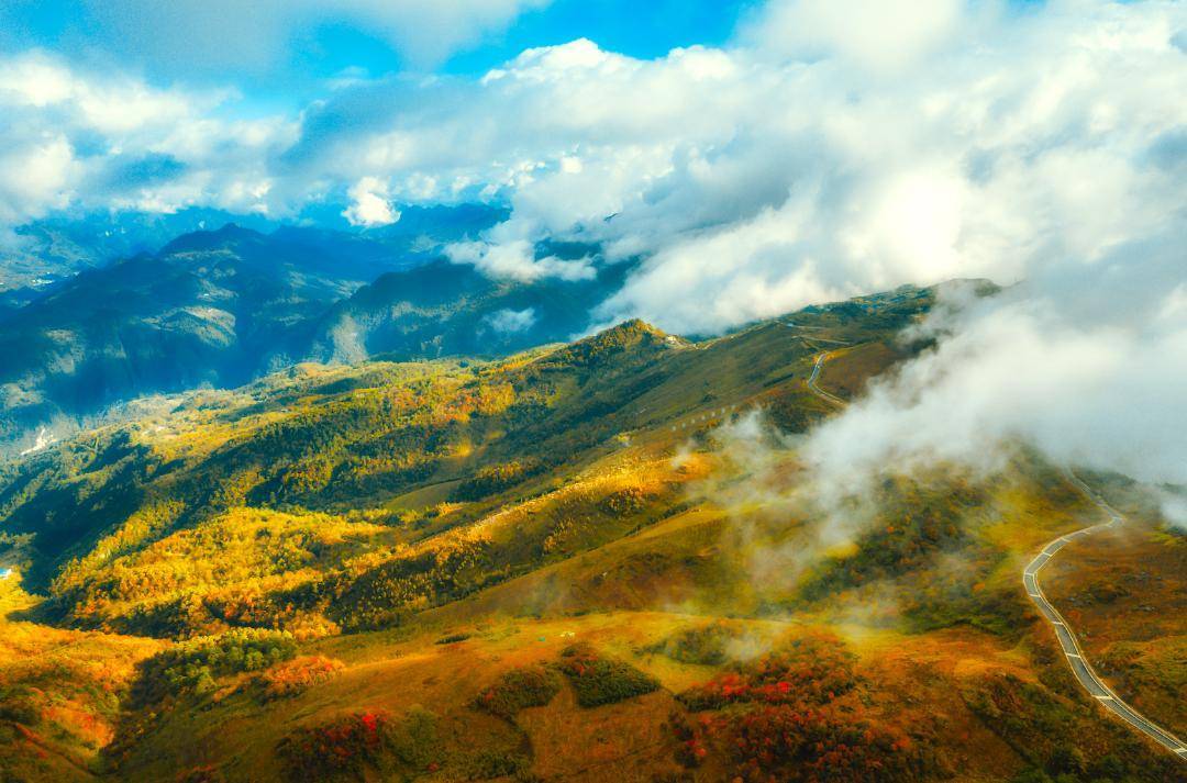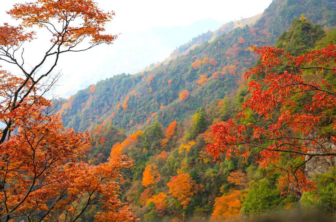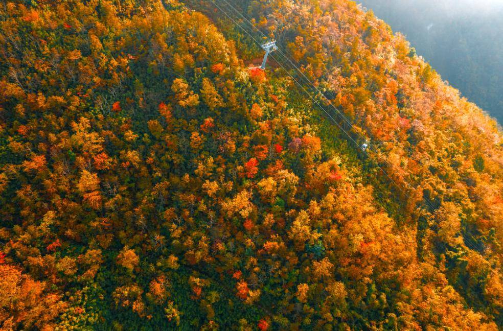 景区索道直达罗盘顶,为游客提供俯瞰彩林的绝佳视角。云海翻滚为底,彩林铺满山峦,形成立体的秋日画卷。游客还可沿红豆杉栈道徒步,欣赏红枫、黄栌、崖柏等植物交织的斑斓景致,随手拍摄即可捕捉诗意画面。