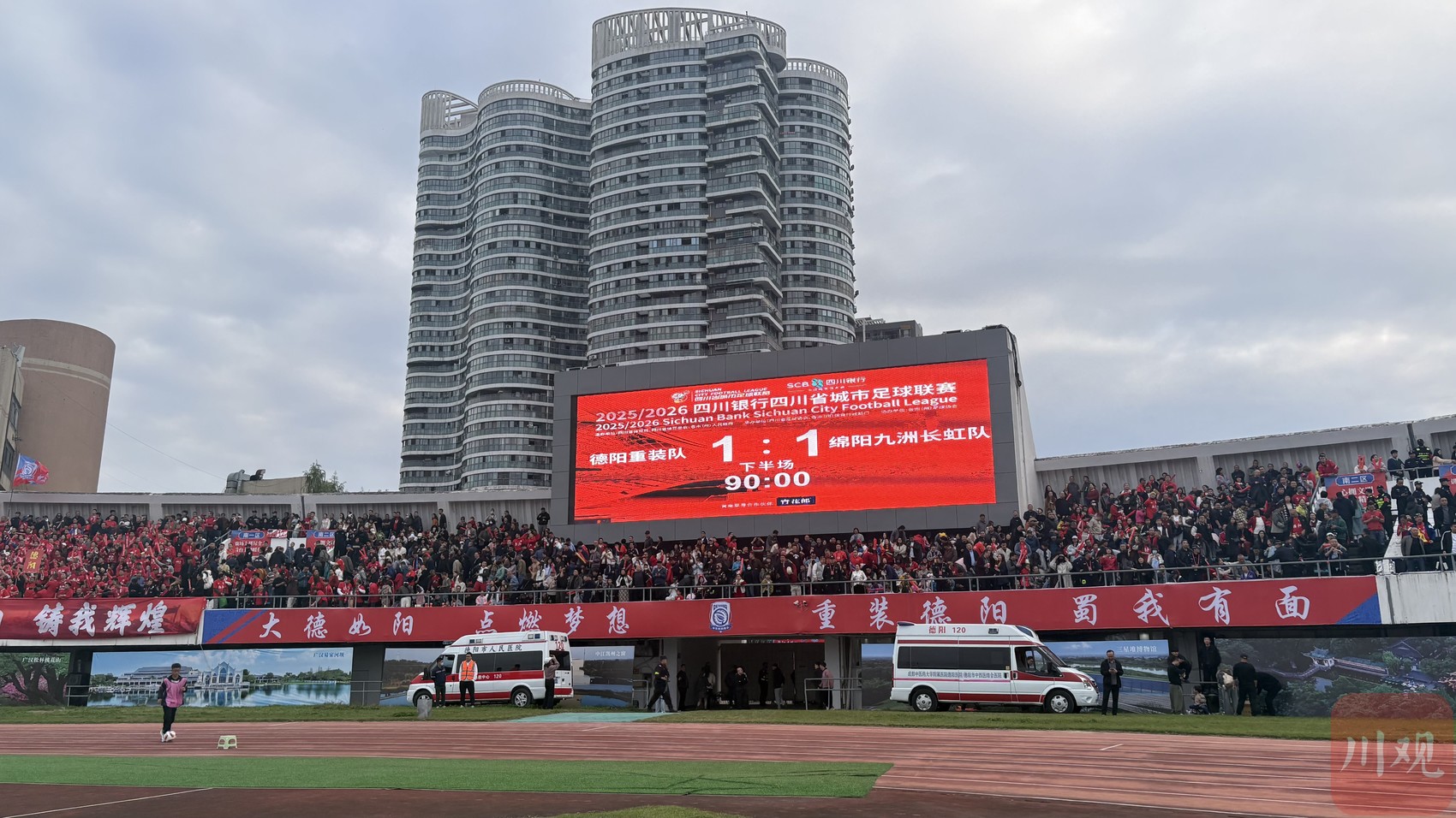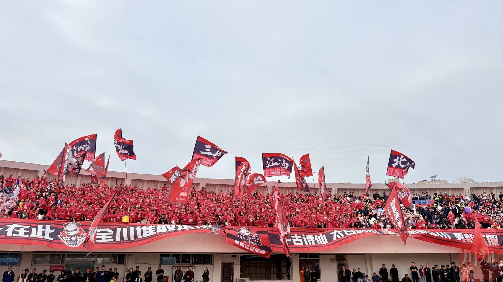 11月9日下午,德阳体育场人头攒动,川超联赛第八轮次川北赛区焦点战在此上演,德阳重装队主场迎战绵阳九洲长虹队,19652名球迷齐聚现场,共同见证这场绿茵盛宴。