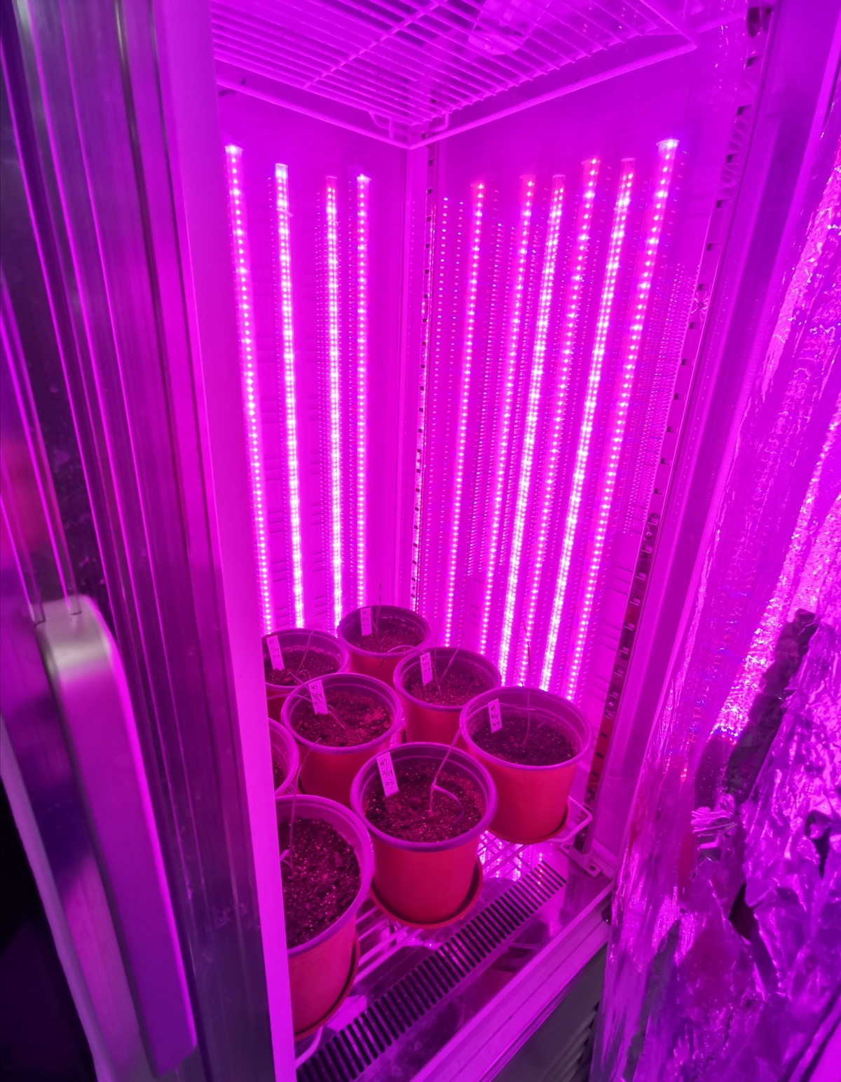 实验室的光照培养室,利用LED灯为作物生长提供广泛光谱